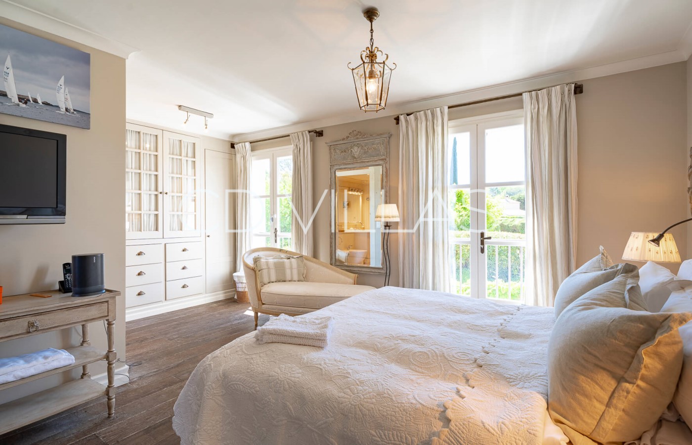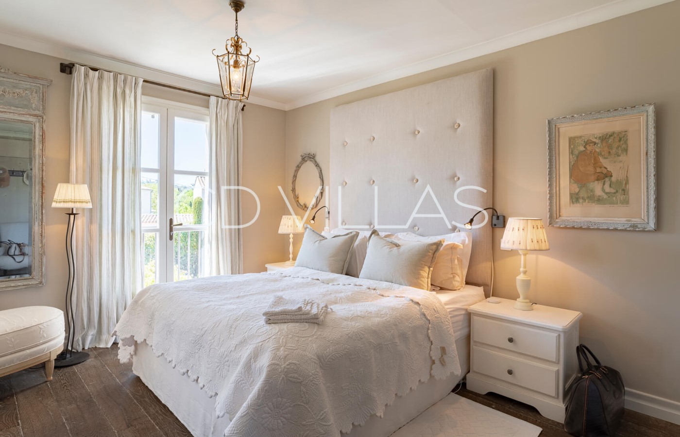 Bedroom 3 - Master bedroom with extra large double bed and ensuite shower room with vanity, shower, toilet and bidet. Lovely views over the garden and pool