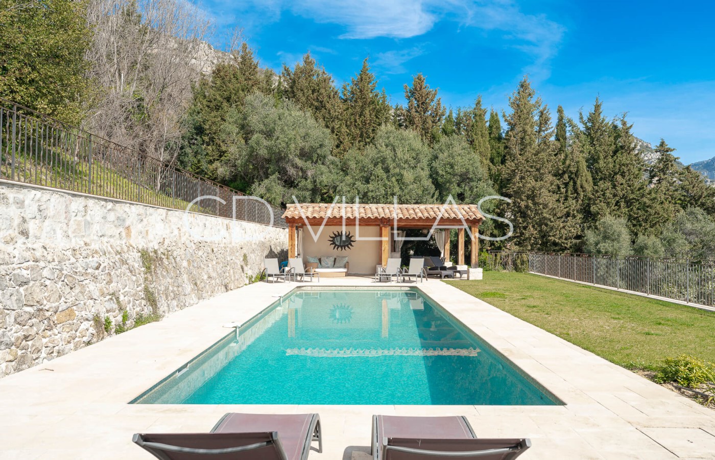 The villa is set in well-maintained flat lawned gardens with a beautiful swimming pool area from where guests can enjoy the stunning views. The swimming pool can be heated on request. There is secure parking for 4 or more cars.