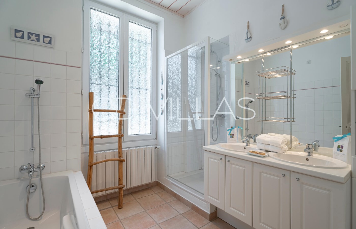 Family Bathroom - Spacious, light family bathroom with bath & in-bath shower, separate shower cublicle and double vanity. This bathroom is shared by bedrooms 2 and 3.