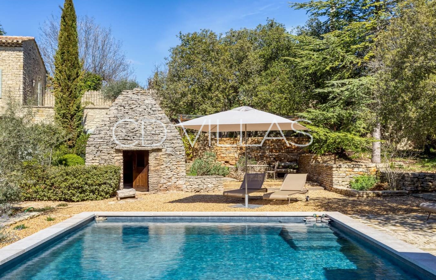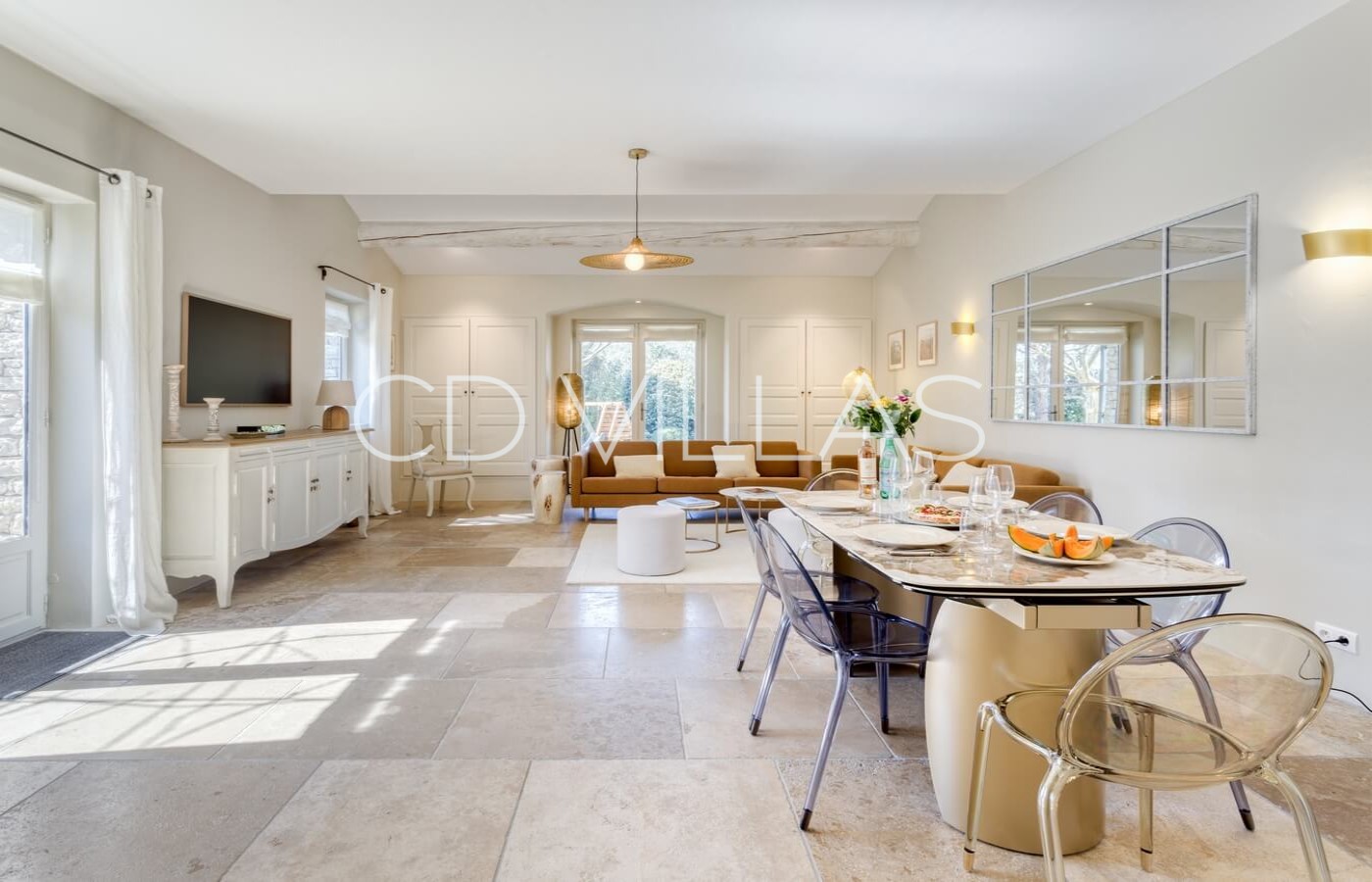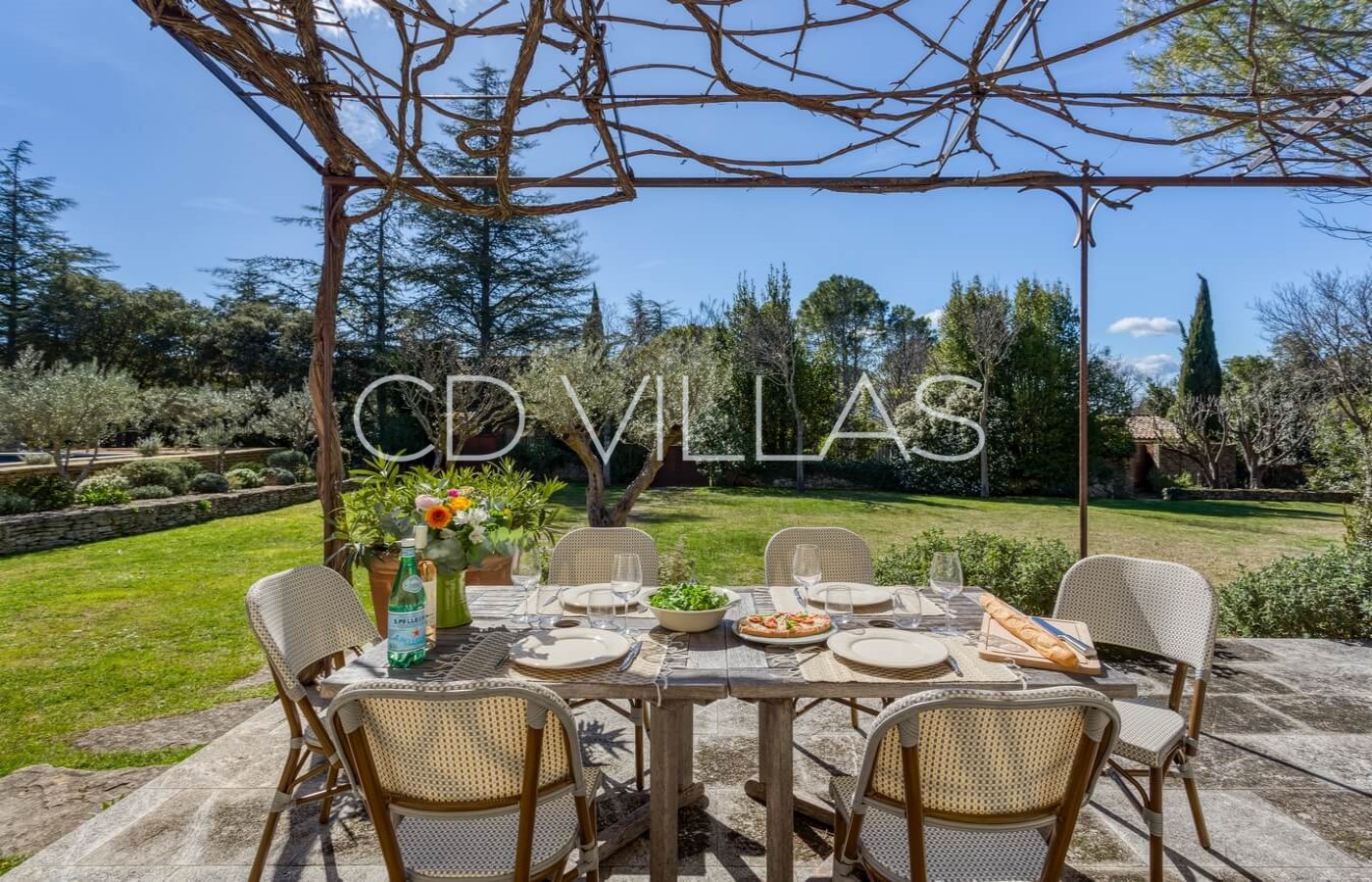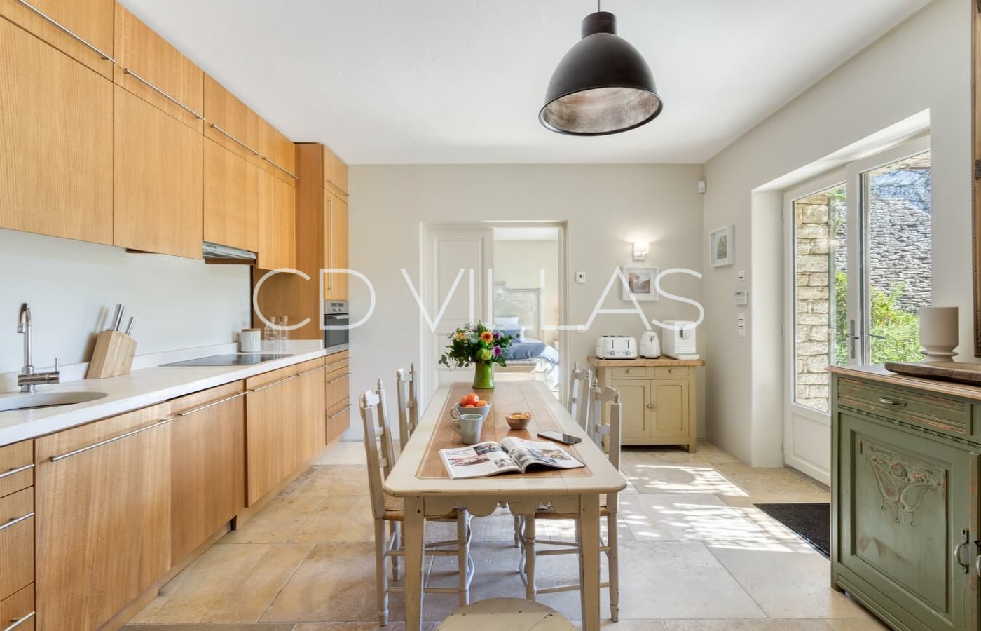 Located just 800 meters from the village of Cabrières d'Avignon, in the heart of Provence, this fully air-conditioned property features three bedrooms and three bathrooms, providing a spacious and comfortable living space for families or groups of friends seeking relaxation and tranquility.