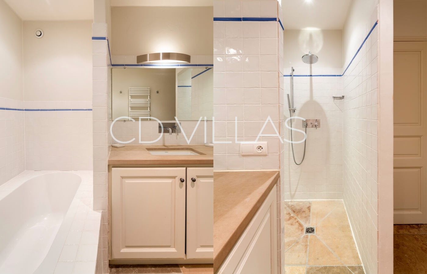 Bedroom 1 - 1 king-size bed (180 cm) with an en-suite bathroom (shower, bathtub, sink, and WC)