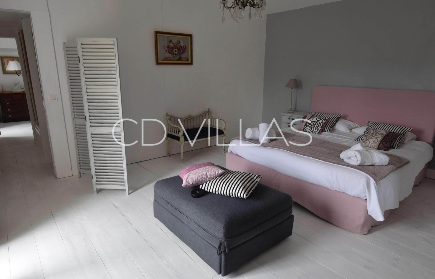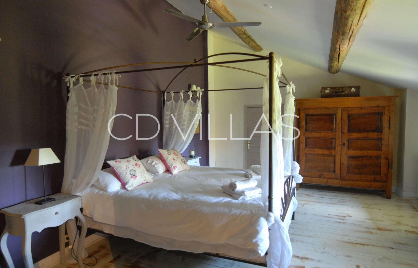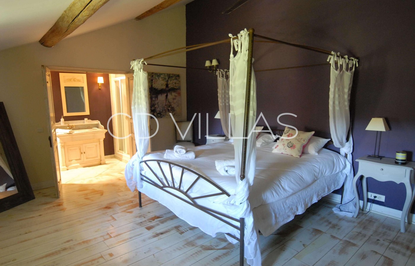 Bedroom 1 - Full of charm, a large room that includes a double canopy bed and a wooden floor. Its beams, authentic parquet floor, and its cozy and calm environment will help you appreciate the spirit of this ancient residence. It includes a bathroom with showers and toilets.