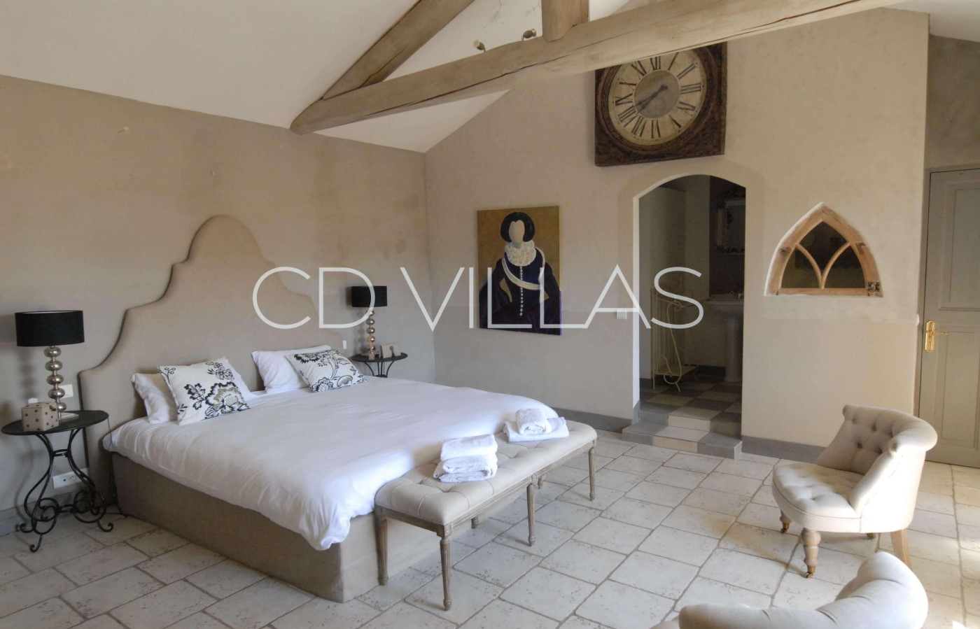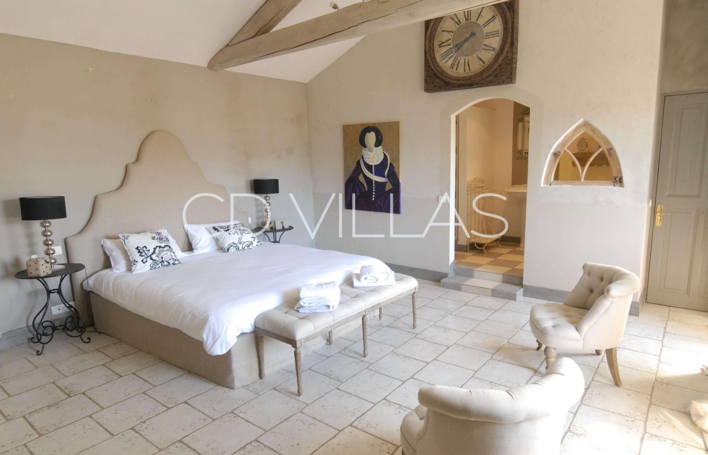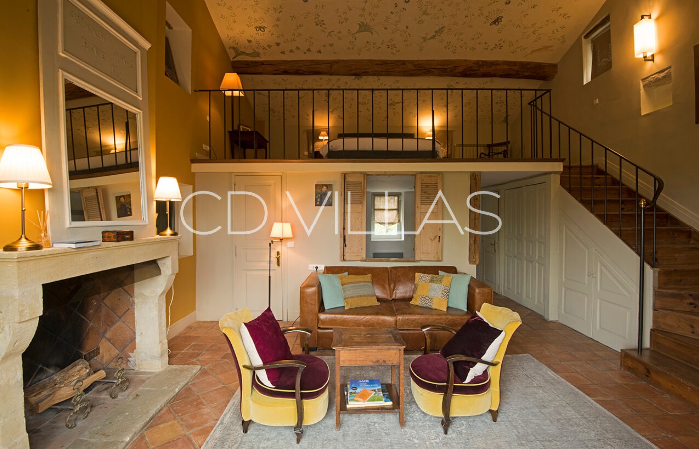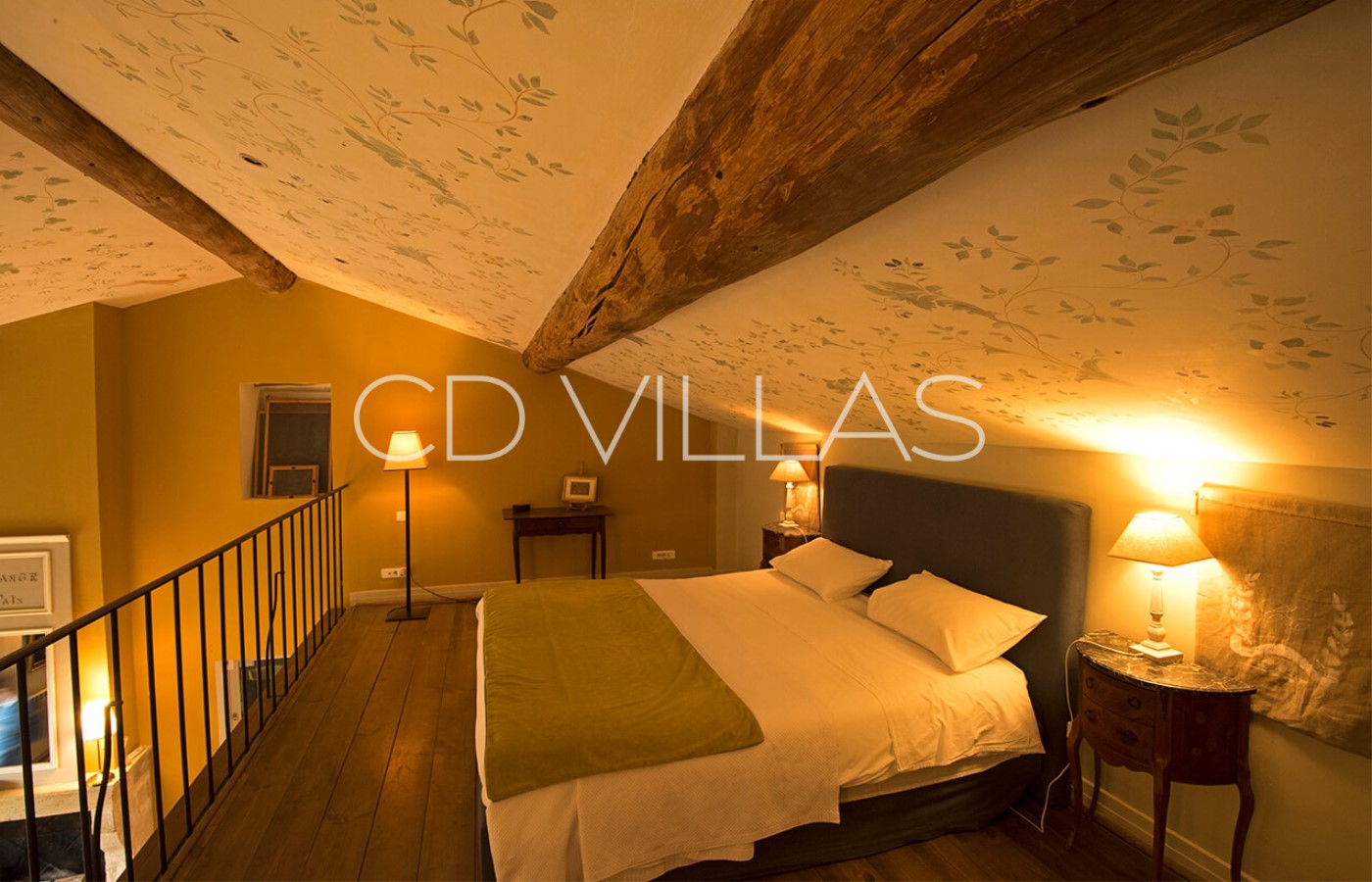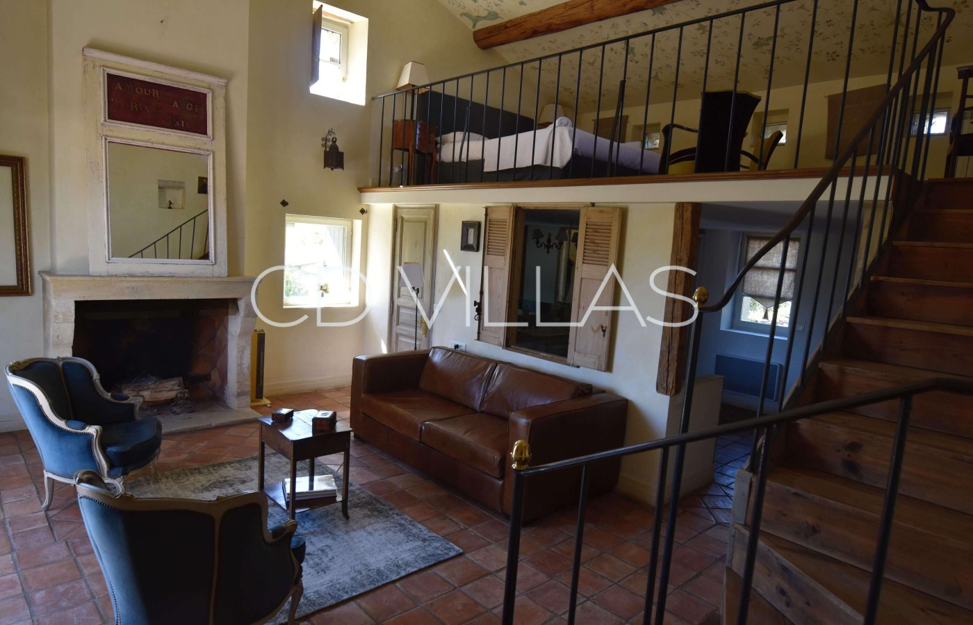 Bedroom 3 - A small bedroom Suite, which includes a cozy lounge, a mezzanine, a large private bathroom and a balcony that gives a privileged view of the Petit Luberon mountain and the inner courtyard of the house.