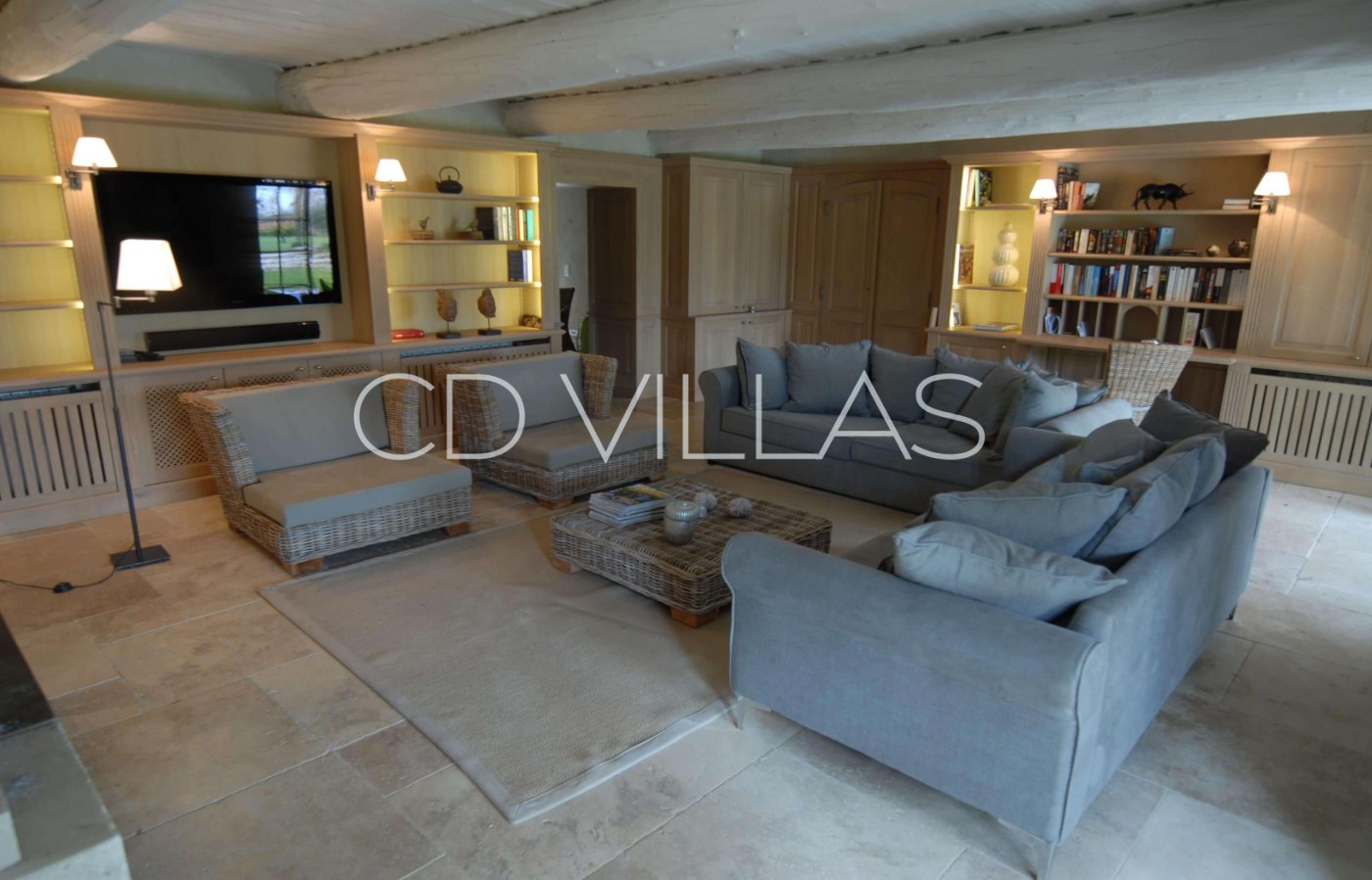 Living Room - Spacious beamed living room with comfy seating and TV and home cinema.