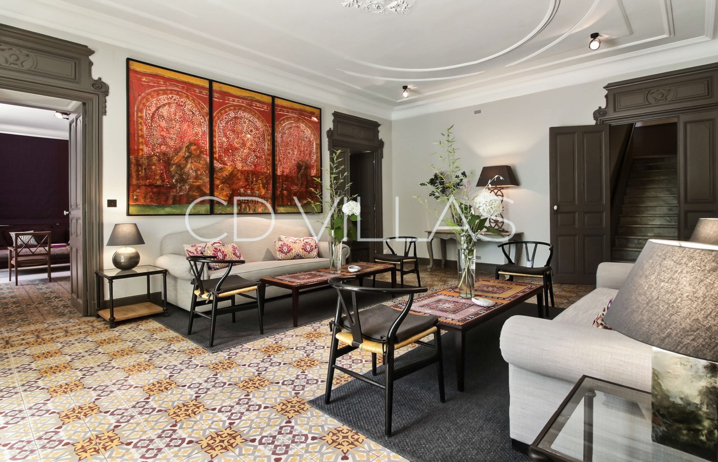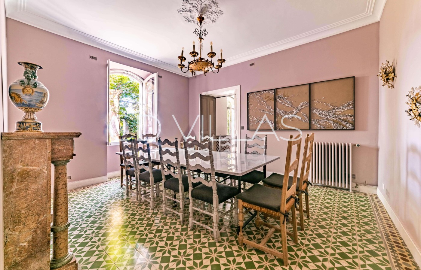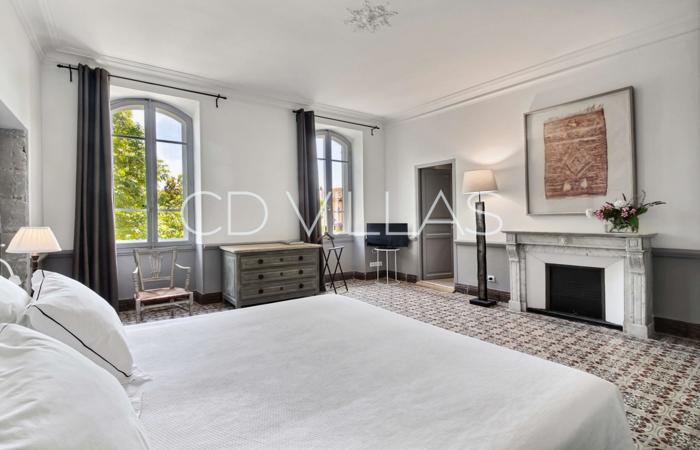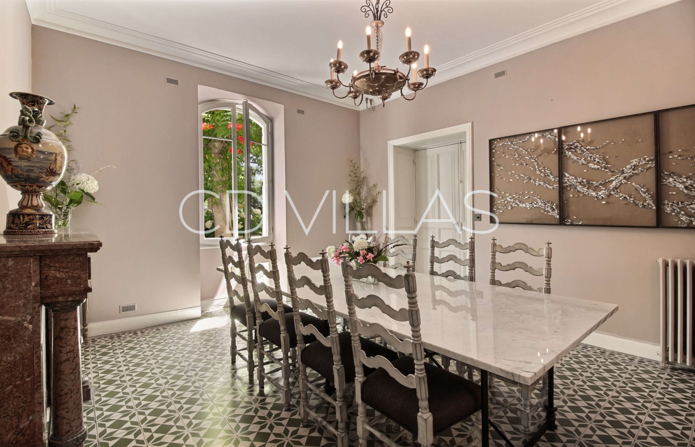 The property has been restored to a high standard and decorated in an elegant mix of modern and traditional Provençal elements featuring original fireplaces, vintage encaustic tiles, and a fabulous marble staircase. The interiors offer lovely volumes and high ceilings.