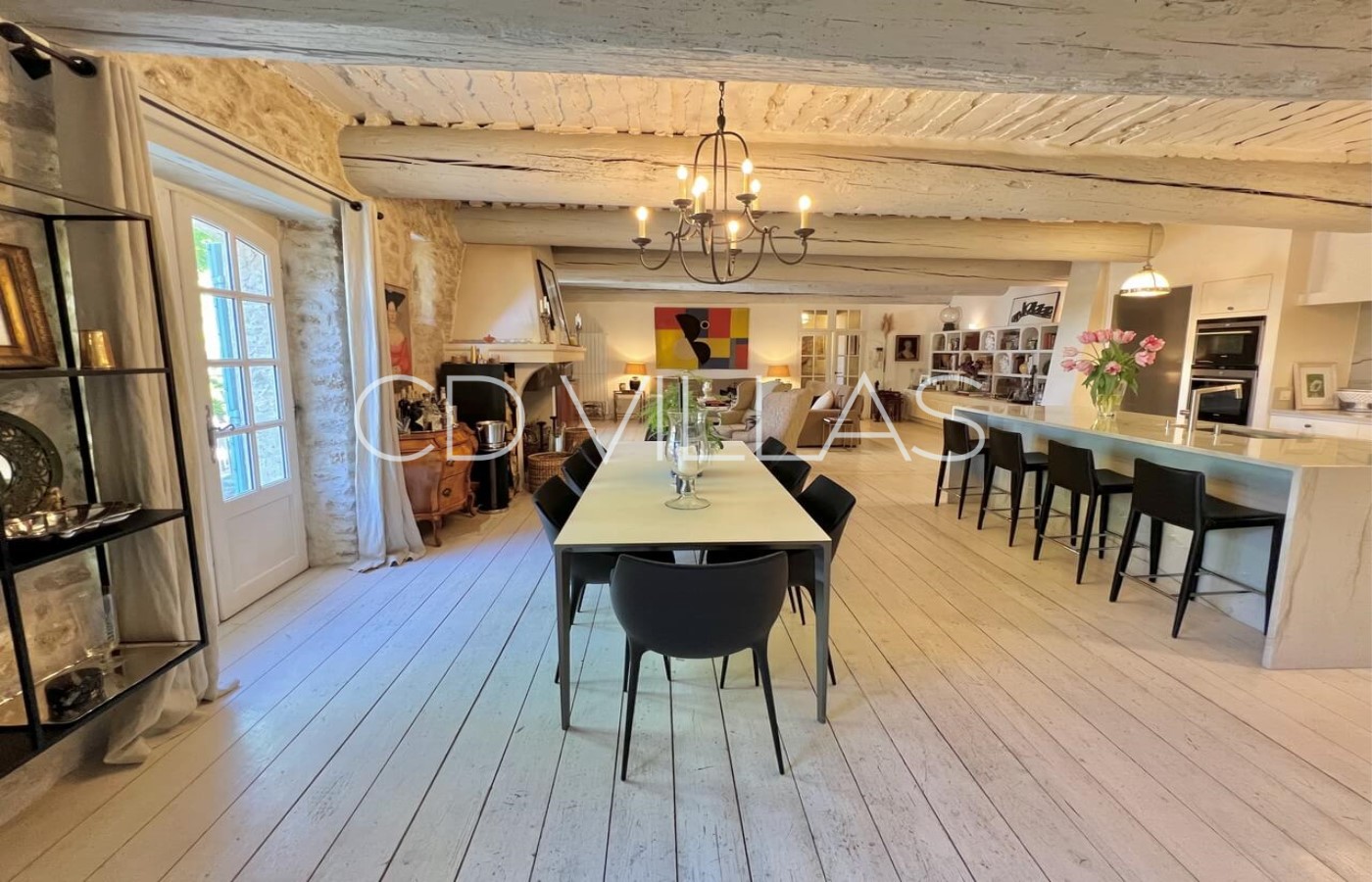 Dining-room - Open dining area with 8 seats next to the american kitchen with 4 extra seats on the counter
