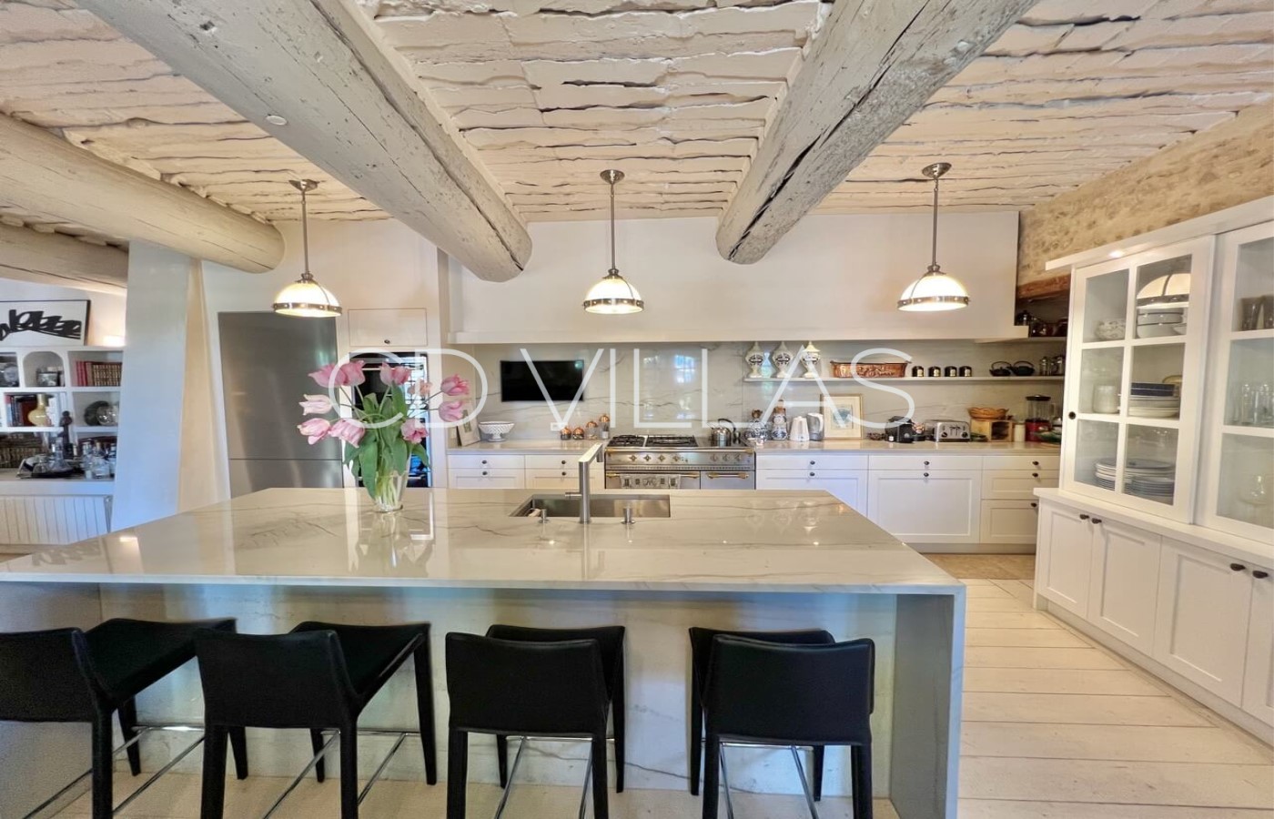 Kitchen - Fully equipped with Lacanche induction and gas range, oven, microwave, American fridge/freezer, two additional fridges, two dishwashers, Nespresso machine, filter coffee maker, kettle, toaster, and Magimix food processor.