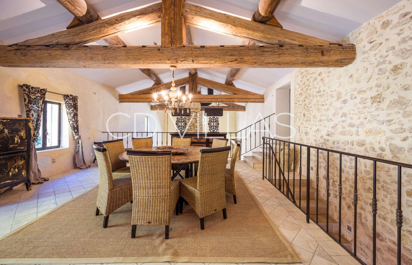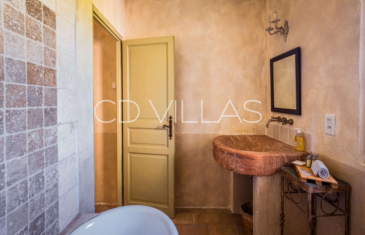 The garden is fenced with centenarian plane trees and a romantic courtyard. With its 10x5m swimming pool, its BBQ, pizza oven, long table under the shaded terrace, lounge areas, yoga platform and boule court, this property the ideal secure and private Provencal retreat offering plenty of activities for your guests.