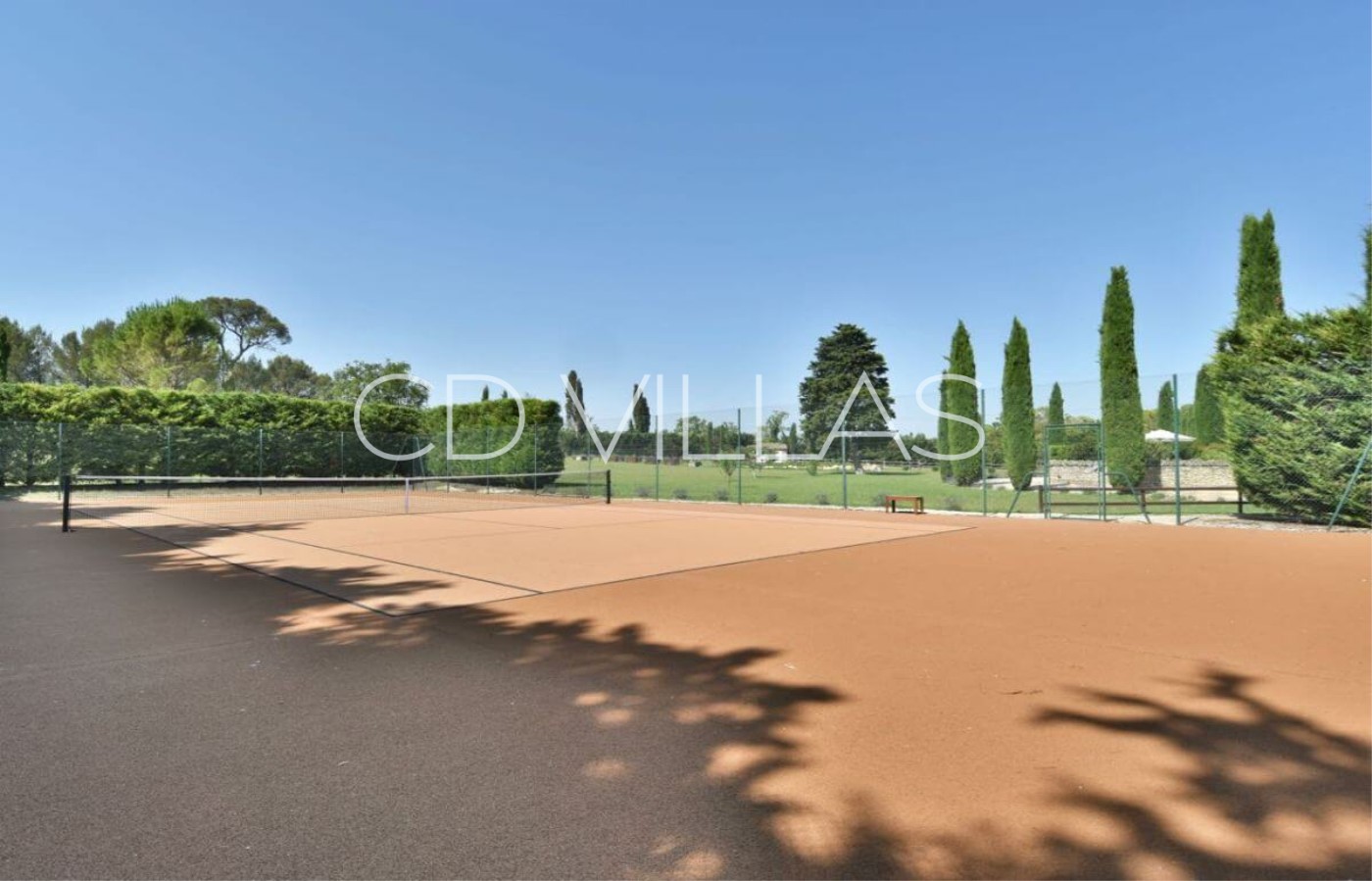 The extensive grounds offer a private heated swimming pool, a floodlit tennis court, a floodlit petanque court, a gym and sauna with jacuzzi, tranquil shady retreats where you can relax beside the river, a vegetable garden, a donkey and a goat! Everything is well maintained by the caretakers living discreetly on the property.