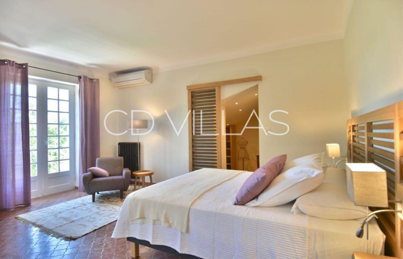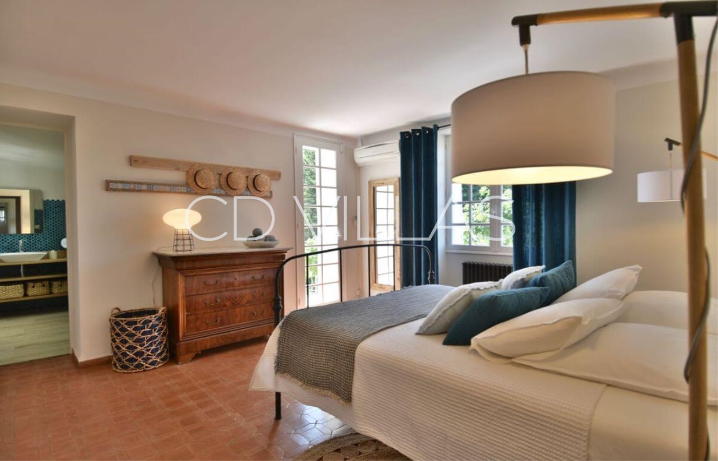 Bedroom 1 - 1 Large Double Bed. With ensuite bathroom, air conditioning and terrace overlooking the river.