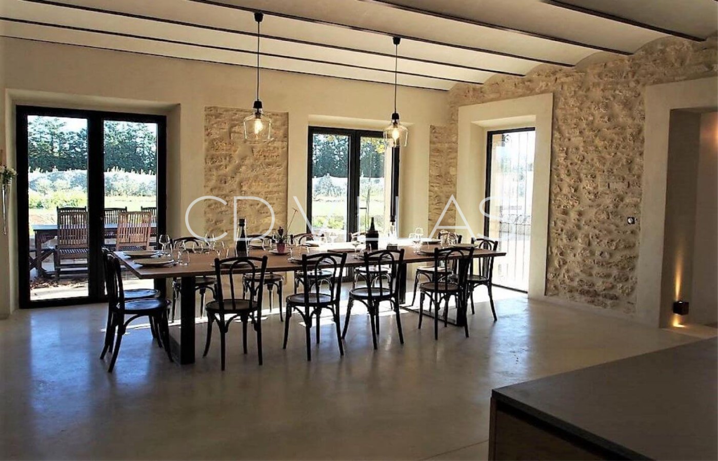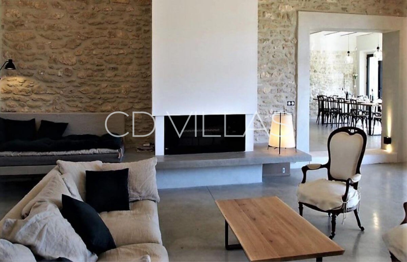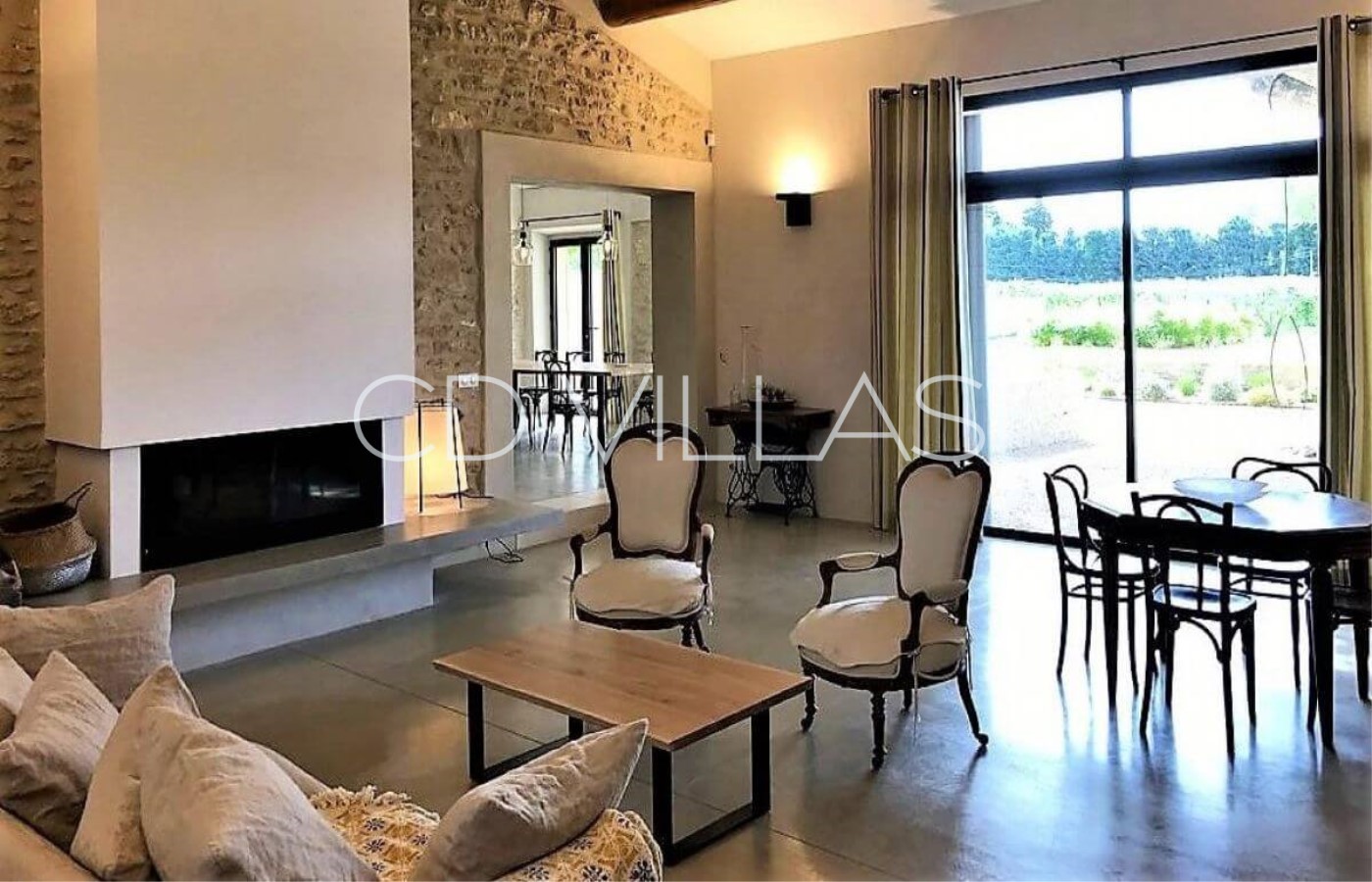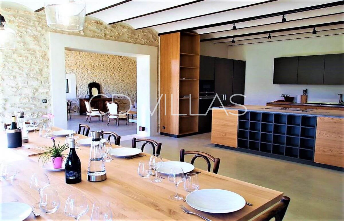 The interiors have been decorated and furnished in a simple stylish mix of old and new. The stone and white painted walls, light oak woodwork and Provencal tiles are a perfect backdrop to some eye-catching contemporary and antique furniture.