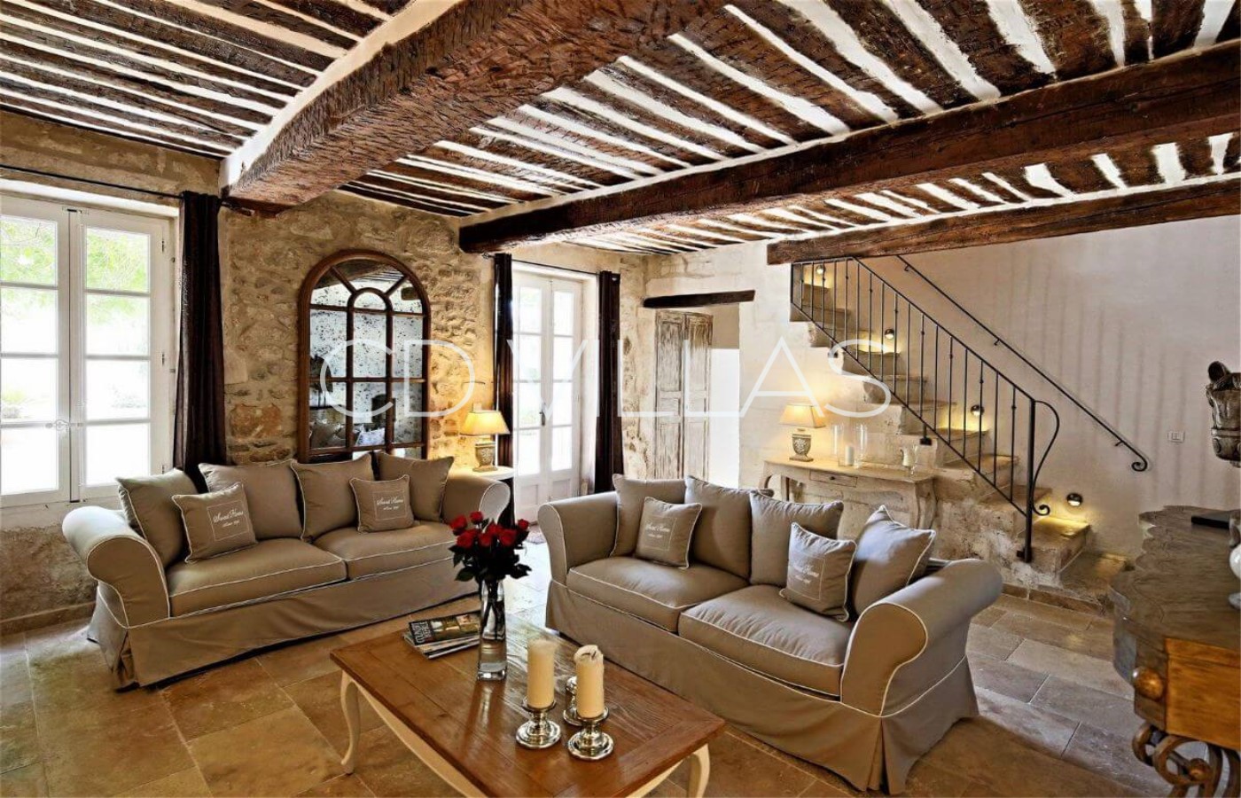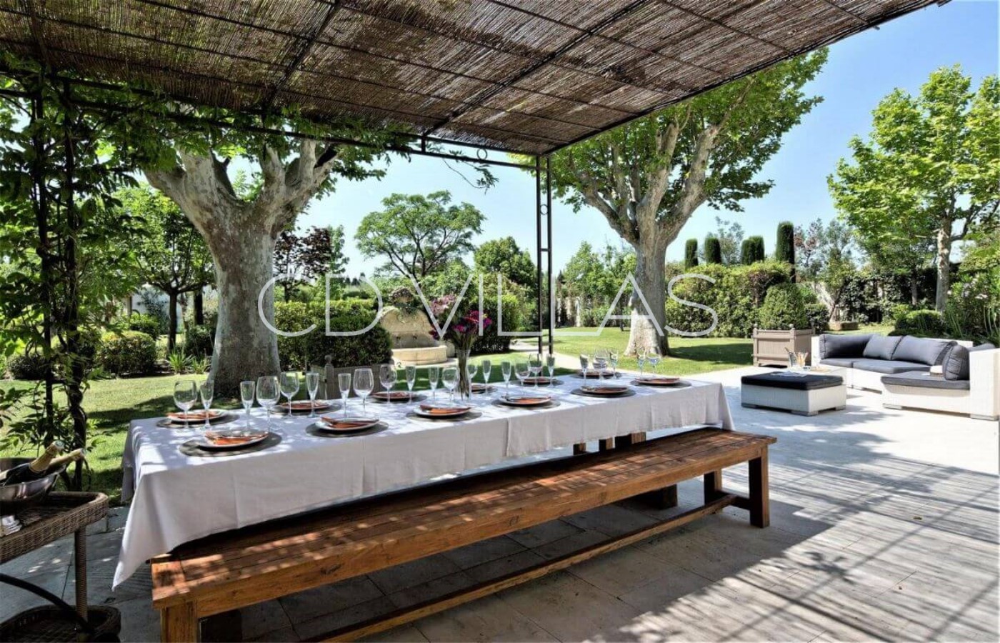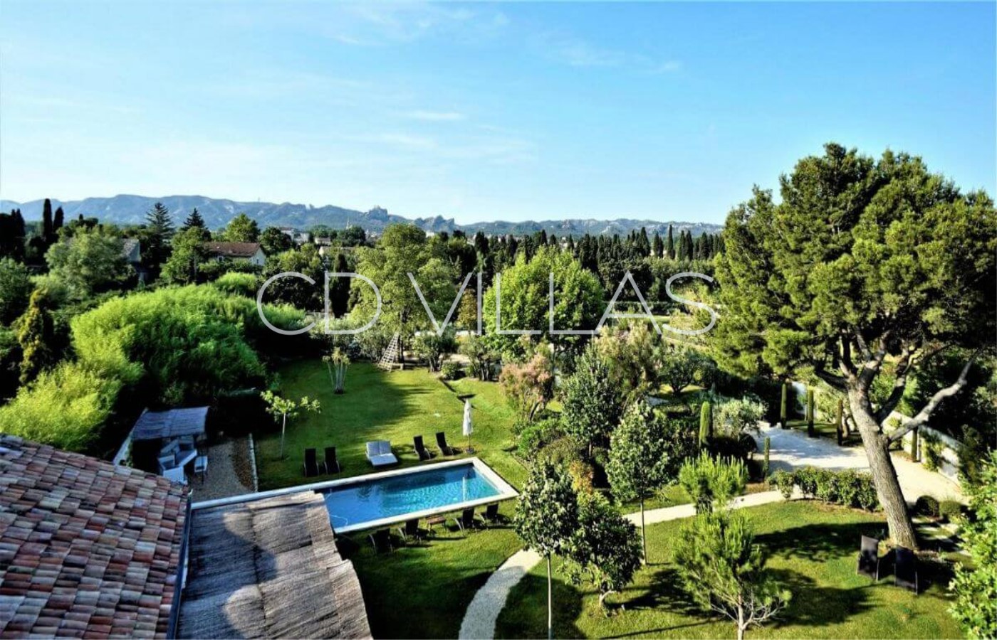 The property looks onto a well maintained lush garden of 6,500 sqm the centre piece of which is a heated pool of 15.5 x 4.5 m which is alarmed and has a sun bathing terrace surround. There is also a small relaxation corner pool complete with air-jets, so that those who wish to swim against the current can do so. Beyond the property boundary one has distant views of les Alpilles.