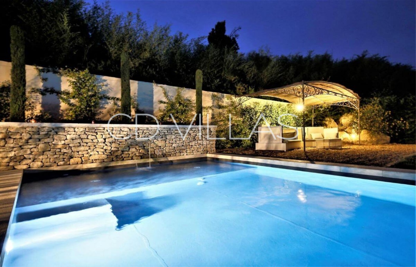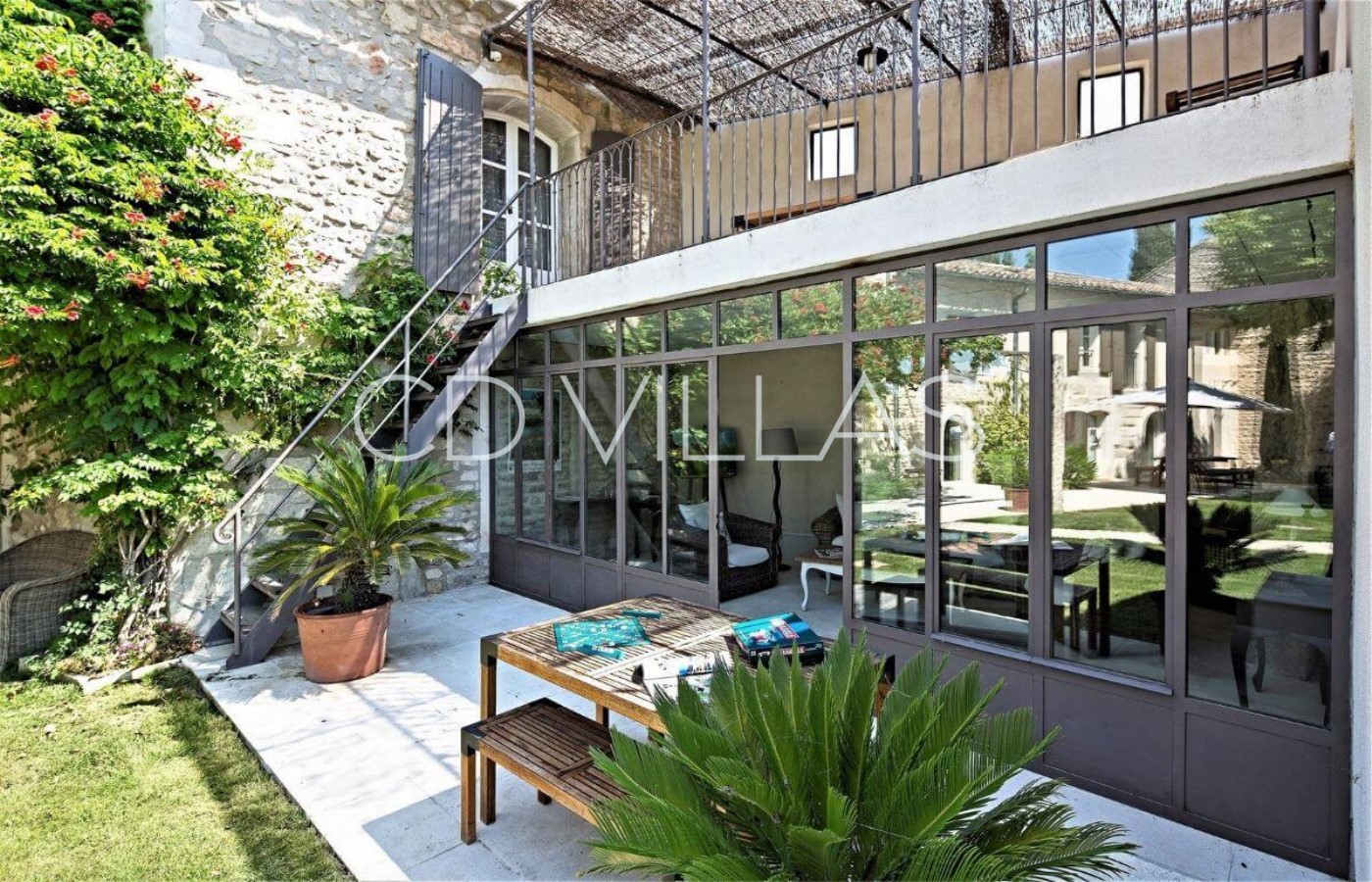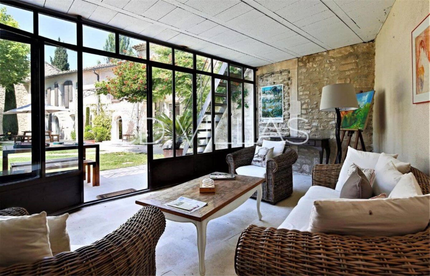 The property looks onto a well maintained lush garden of 6,500 sqm the centre piece of which is a heated pool of 15.5 x 4.5 m which is alarmed and has a sun bathing terrace surround. There is also a small relaxation corner pool complete with air-jets, so that those who wish to swim against the current can do so. Beyond the property boundary one has distant views of les Alpilles.