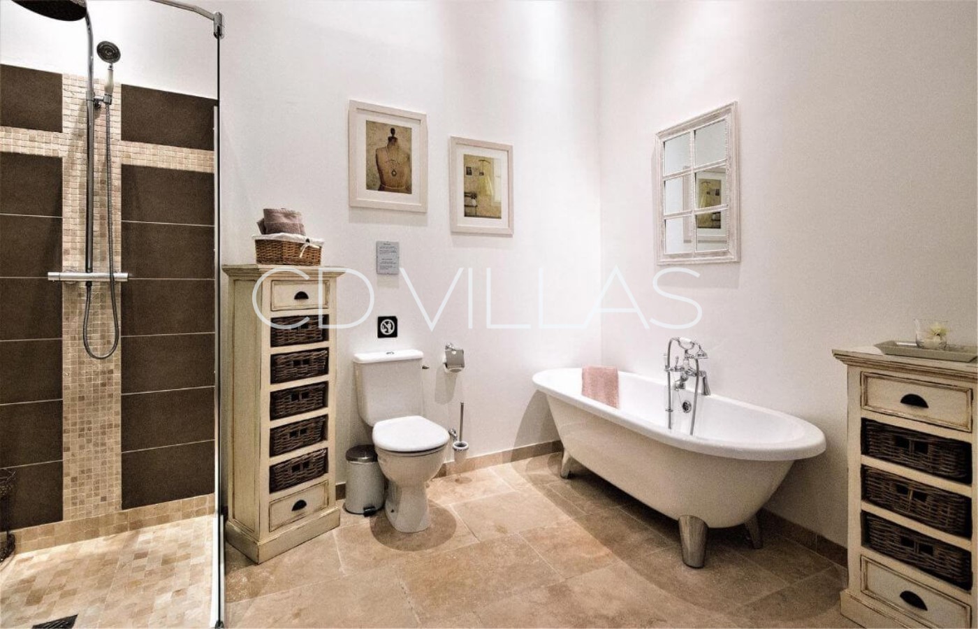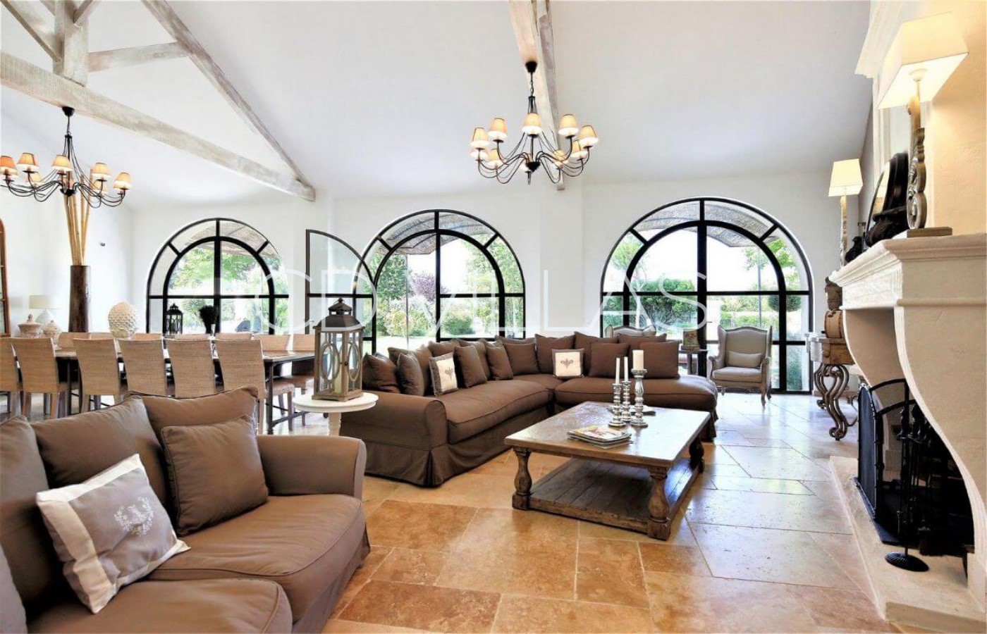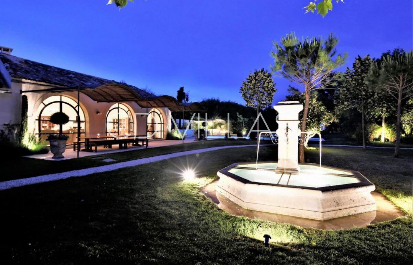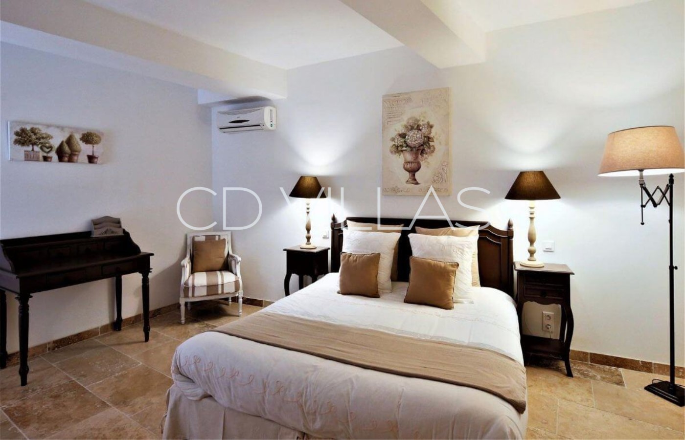Other impressive features to note are the immense 100 sqm summer lounge with 6 metre high ceiling, which features a fully equipped summer kitchen, including American fridge/freezer, range, gas BBQ, plancha and dishwasher, a magnificent dining table that can seat up to 24 people, a large Provencal fireplace, a TV, DVD, Home Cinema and large wrought iron French windows that overlook the pool, garden and pretty central fountain. Next door to which, is a fully equipped fitness room, with sauna, exercise machines, CD player, walk-in shower and separate WC.