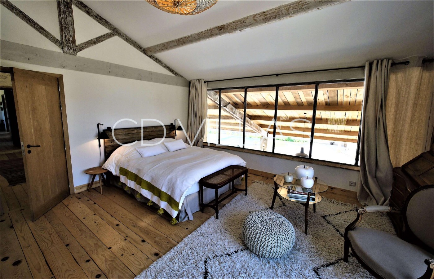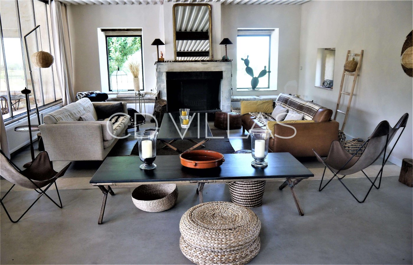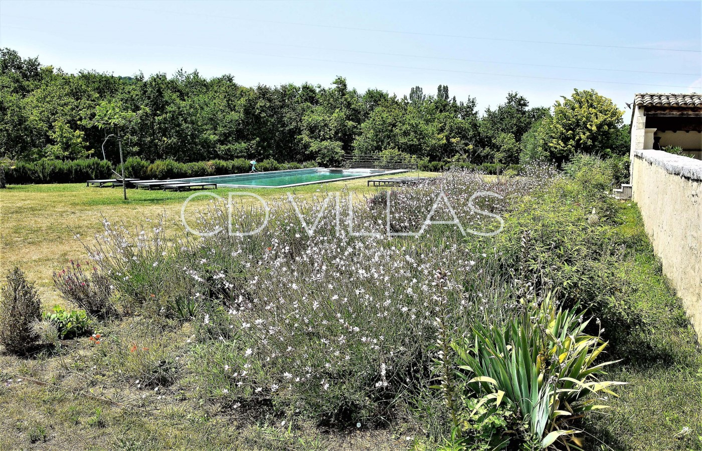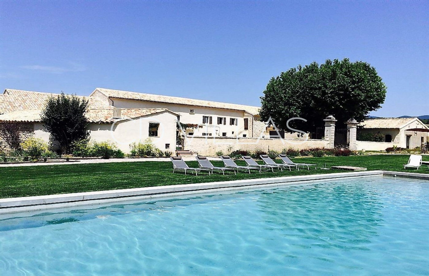 Immediately in front of the south facing farmhouse there is an attractive and large courtyard with BBQ area, a small twin bedded room for children or staff, a covered terrace for dining outside and ornamental pond, whilst further afield, again in front of the property there is a covered 16 x 8 metre swimming pool and boules court. At the end of the drive, from the road leading out of Valreas, which is around 2kms away, there are parking spaces for at least 8 cars.
