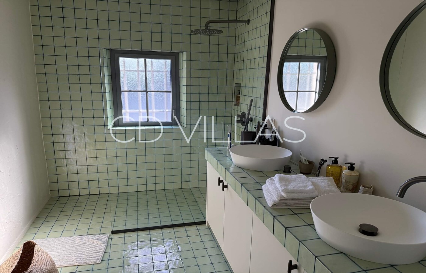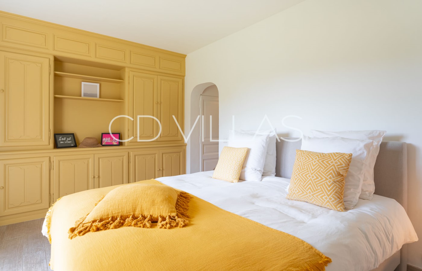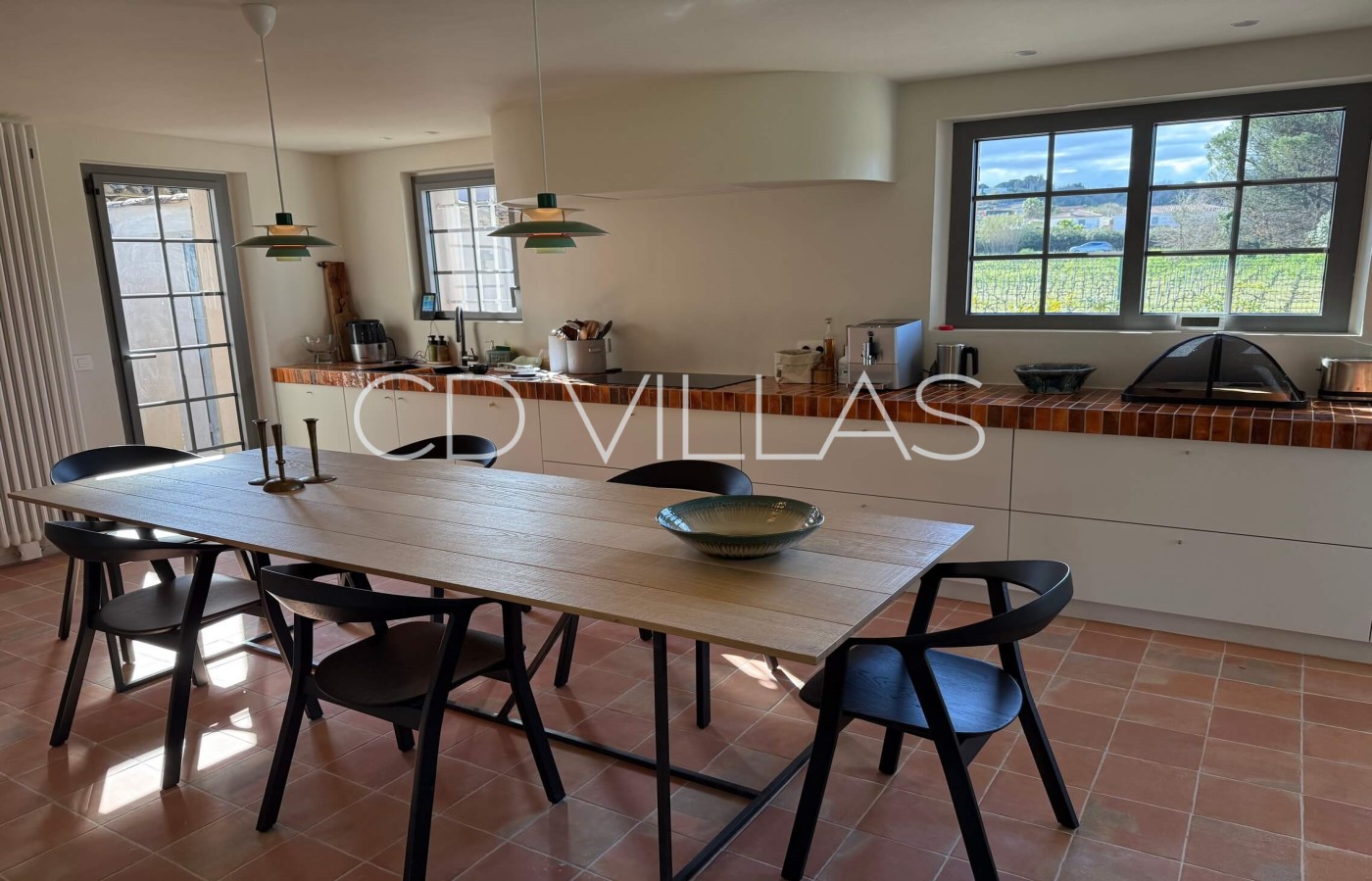 The villa is composed of 5 ensuite air conditionned bedrooms, a large living room overlooking the garden and the vineyards, fully equiped kitchen and dining room. There is a small TV den , wifi, sound system, Smart TV and a large fire place that frames the living room.