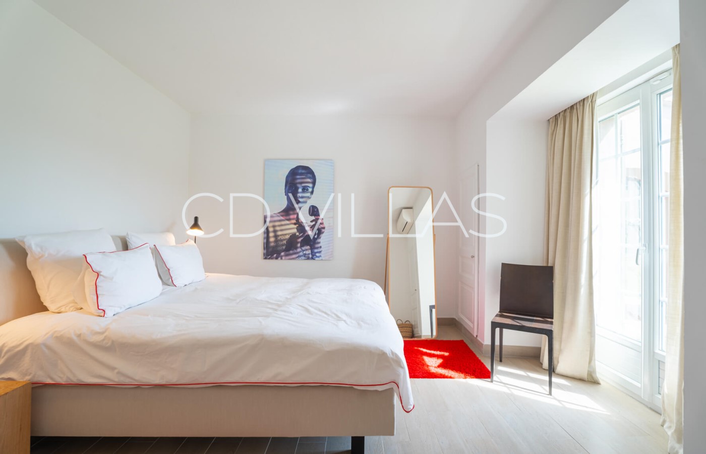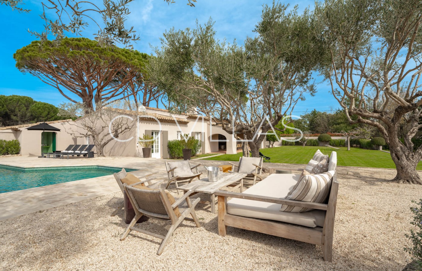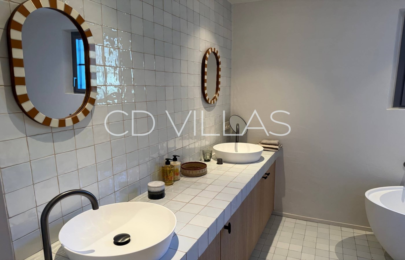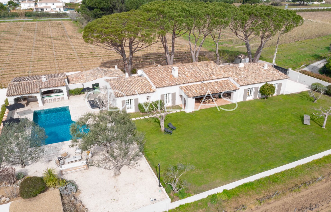 The villa is composed of 5 ensuite air conditionned bedrooms, a large living room overlooking the garden and the vineyards, fully equiped kitchen and dining room. There is a small TV den , wifi, sound system, Smart TV and a large fire place that frames the living room.