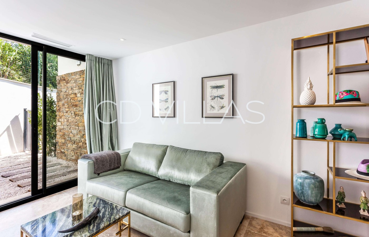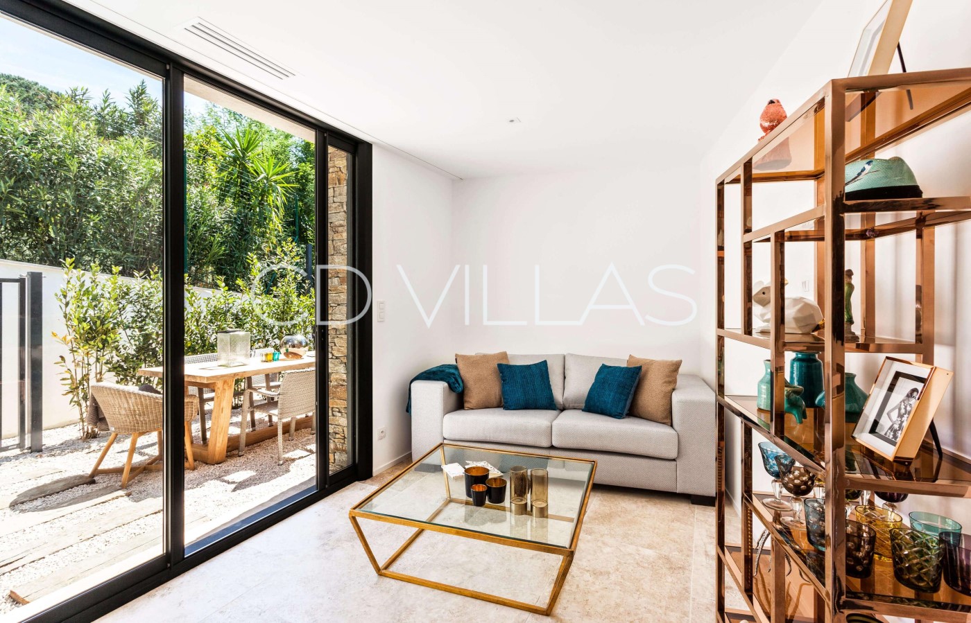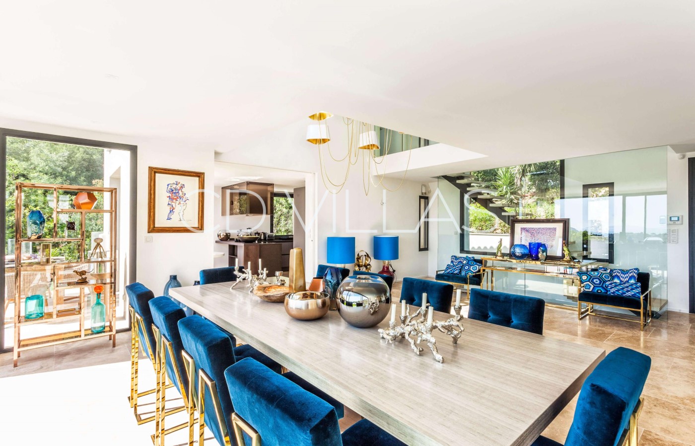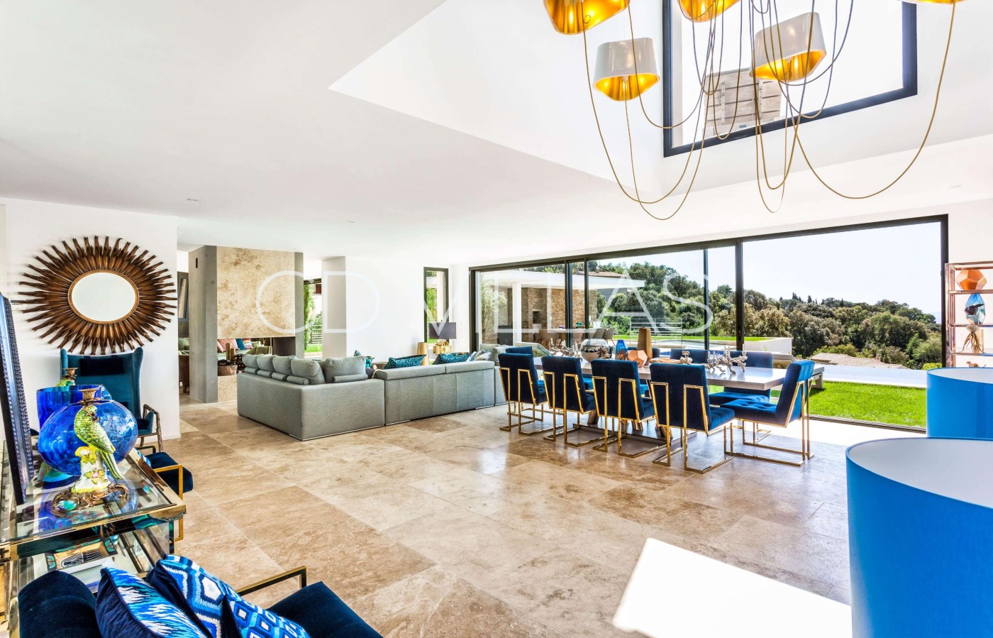 Living Room - in open area with dining room, double living with fireplace, sofas and armchairs. Seaview, direct access to terrace and pool area