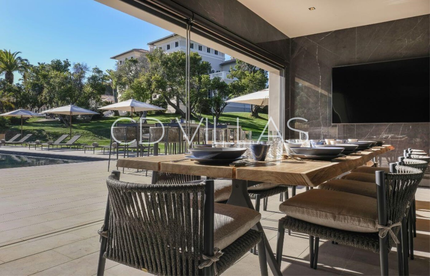 Dining room - with dining table for 8 guests and tallboy tables for additional guests. Direct access to the terrace