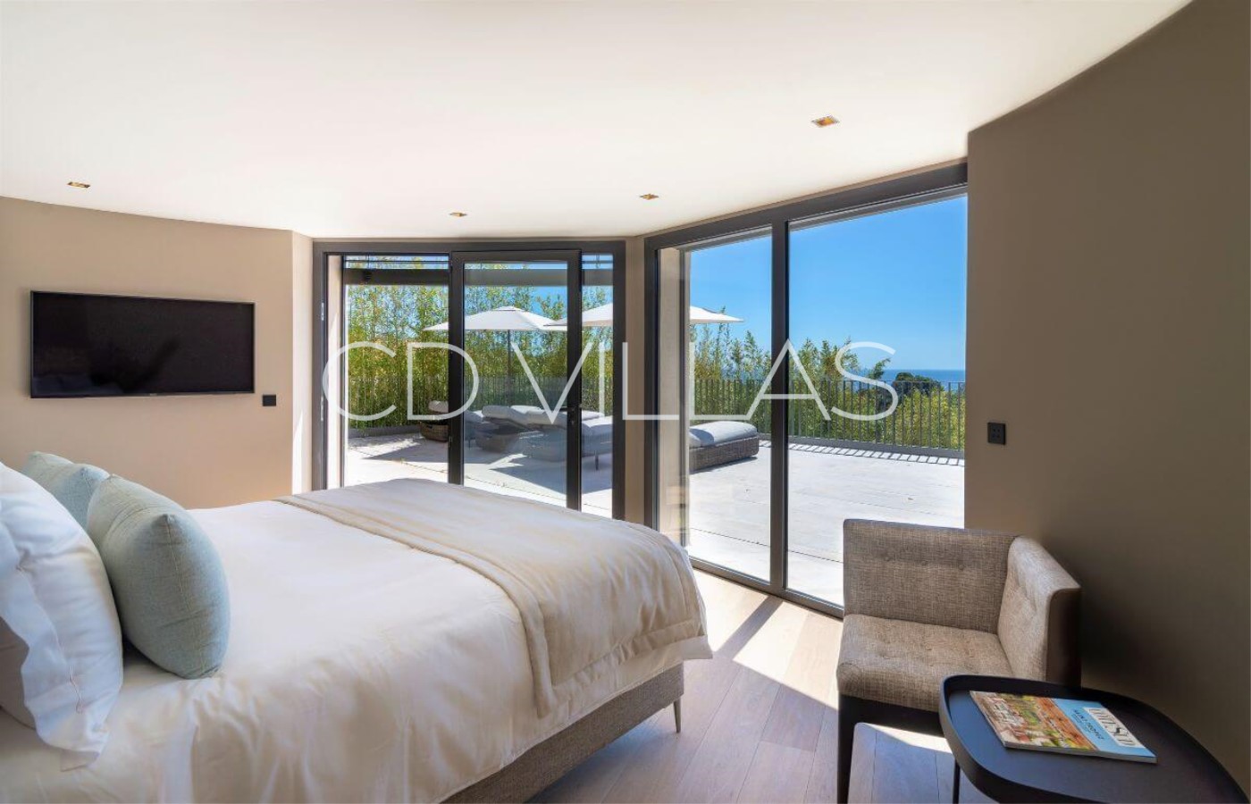 bedroom 5 - 2nd Guest House: Extra Large Double Bed with ensuite bathroom, fitted wardrobe, AC, private terrace, seaview and balcony with double swing