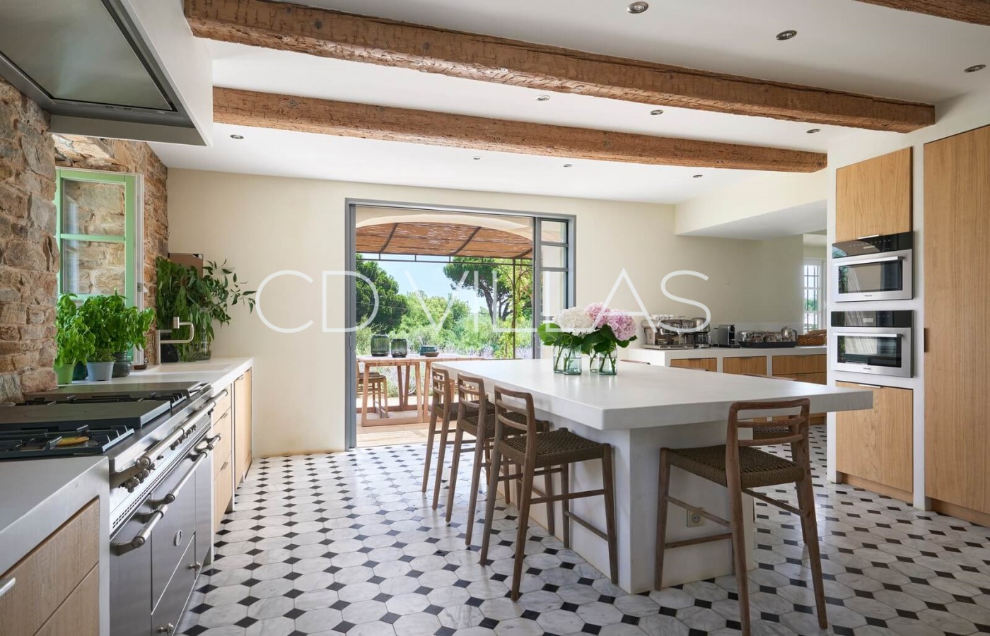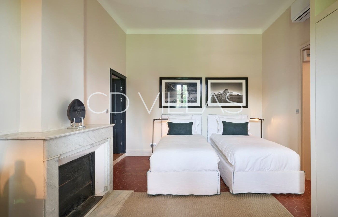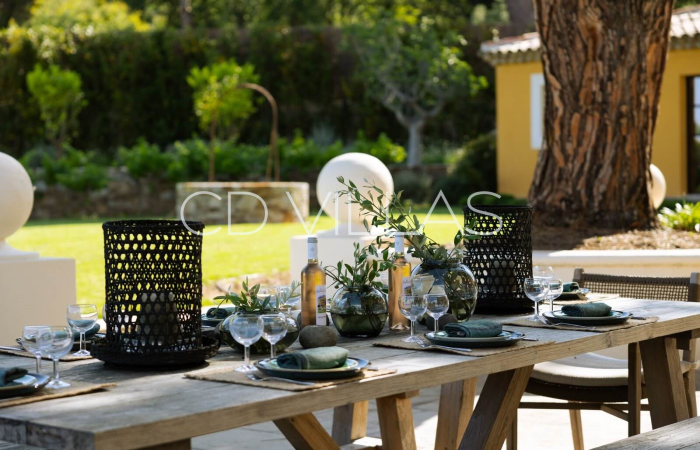 Just a stone's throw from the iconic Pampelonne Beach and the center of Saint-Tropez, the villa offers an intimate and welcoming setting for 14 guests, spread across 7 refined bedrooms, including one twin and 5 bathrooms. Every space exudes elegance and comfort, with unique decorative details that make each room inviting and full of character.