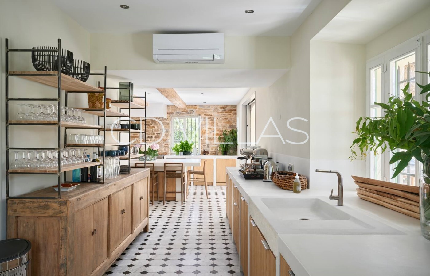 The kitchen is a true paradise for gourmet lovers, featuring high-end equipment, including the prestigious Lacanche stove, perfect for preparing delicious meals with vegetables from the organic garden.