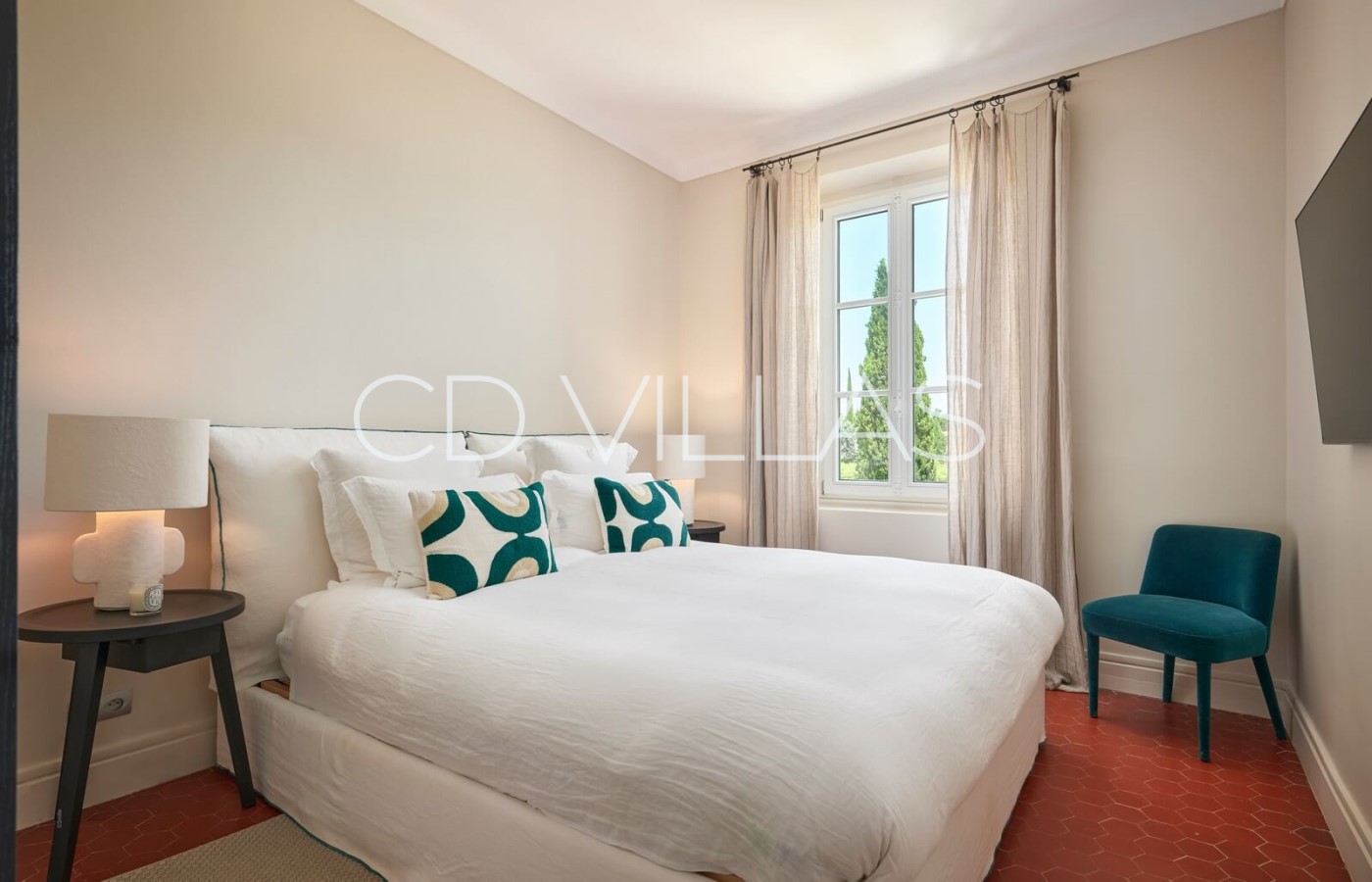 The Bastide Rosemary is a true haven of peace, nestled in the heart of the Ramatuelle vineyards, where nature and serenity reign supreme. This elegant 19th-century bastide immerses you in an authentic Provençal atmosphere, with a subtly décor that blends typical southern French materials with contemporary touches.