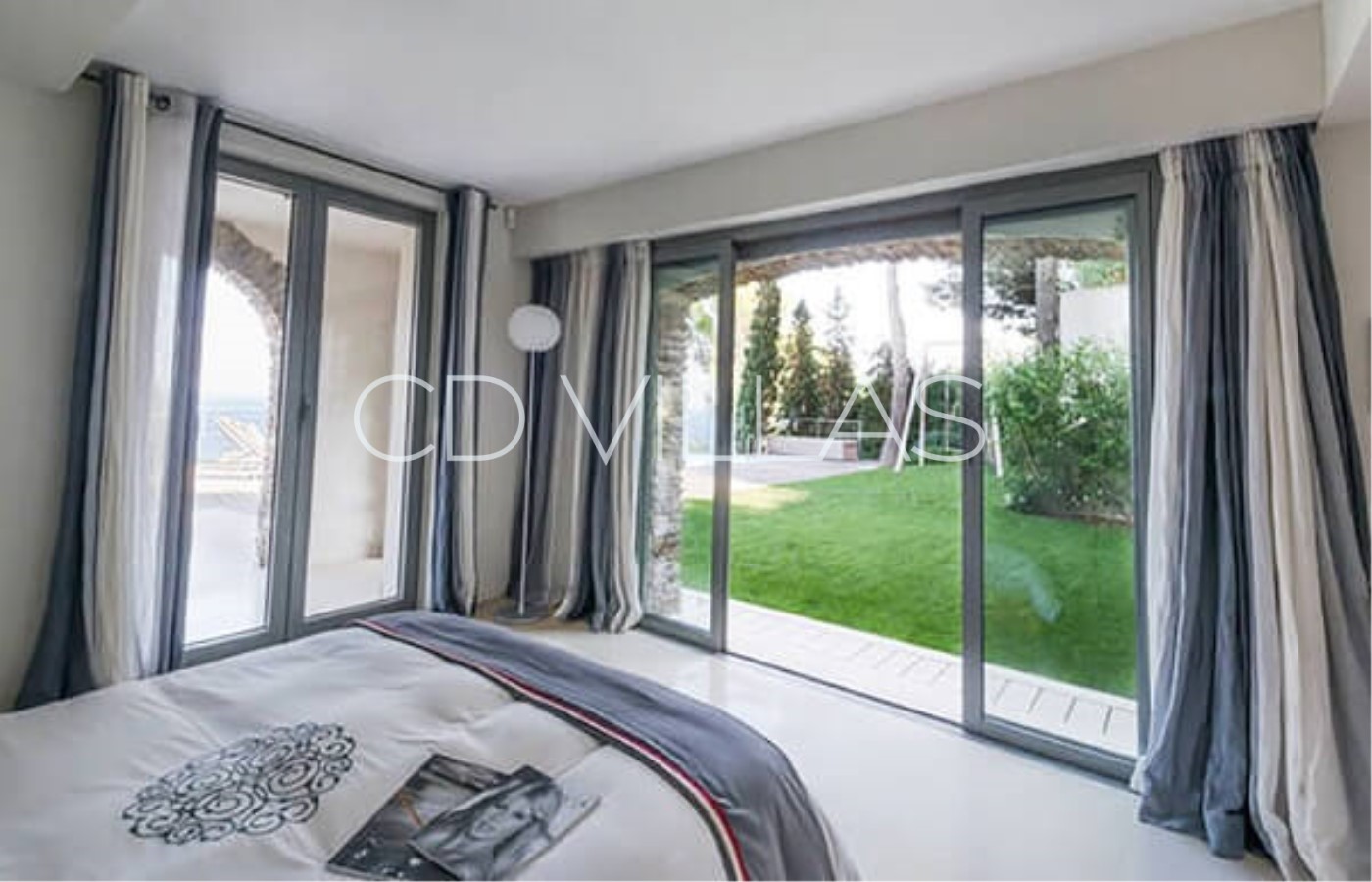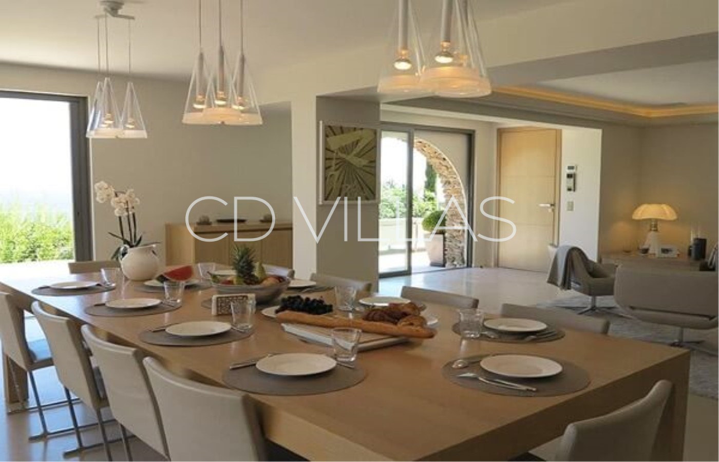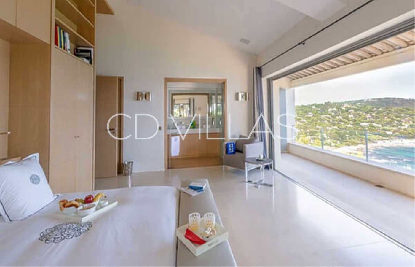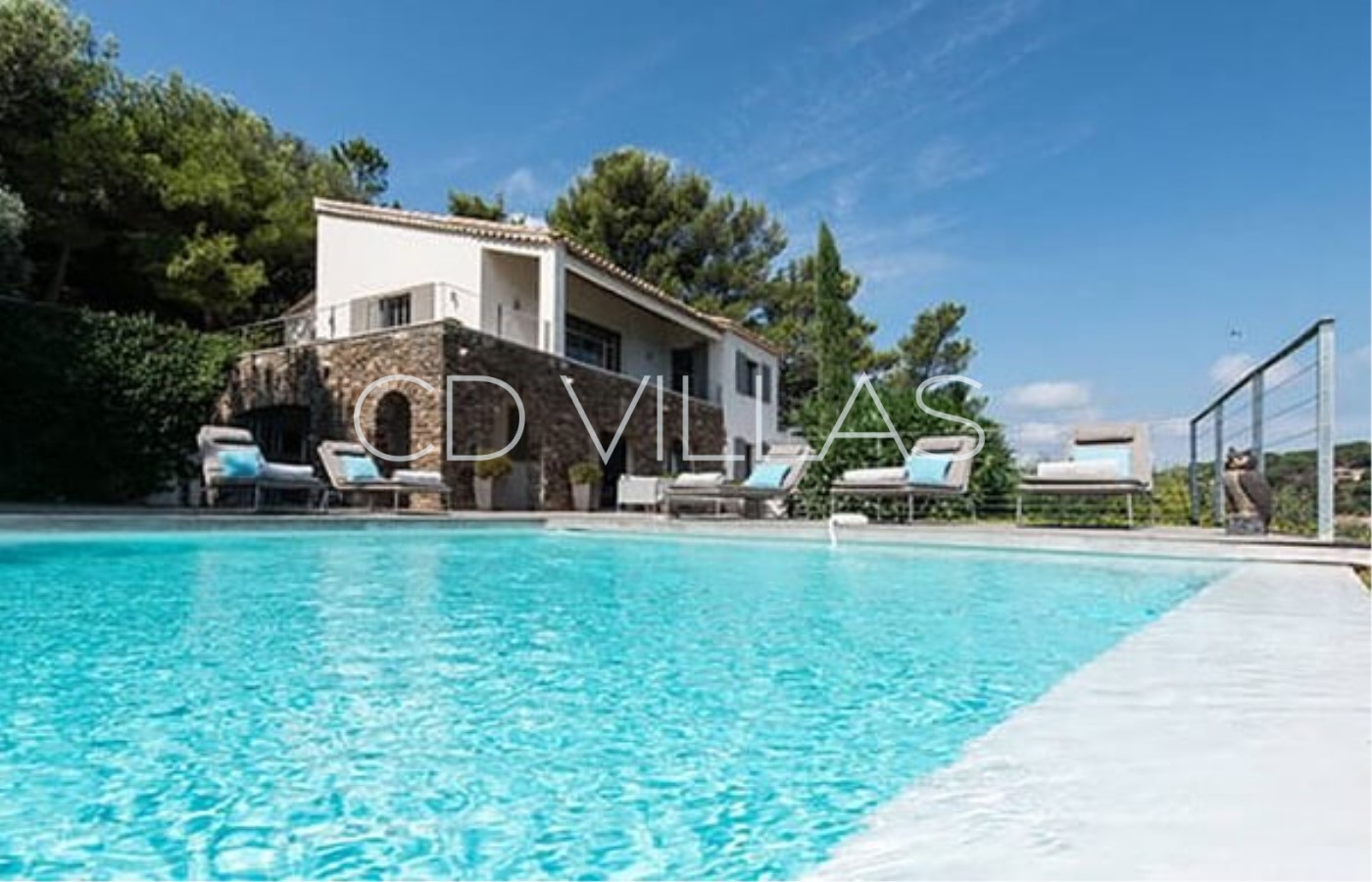 A stunning modern villa with breathtaking views of the Mediterranean with direct access to the pretty Escalet Beach by a short walk. From there, you are a 10 minutes drive from St Tropez. Recently renovated, the villa has five air conditioned bedrooms to comfortably accommodate up to 8 guests, a fabulous double living room, a dining room, and a designer kitchen, all in luxurious and modern comfort.