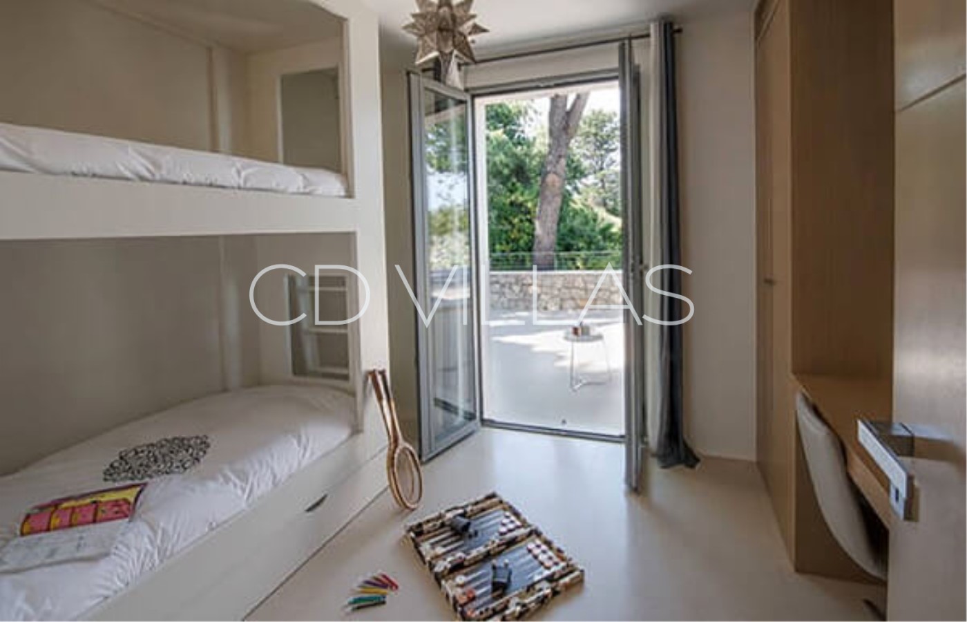 A stunning modern villa located in the exclusive gated Domaine de l'Escalet with a breathtaking view over the Mediterranean and direct access onto Escalet Beach. The property has been newly renovated and re-designed to offer 5 deluxe bedrooms, a master double with en-suite bathroom and a picture window to the sea, two large double bedrooms both with en-suite and another large double and a children's room with two bunk beds. Downstairs there's a huge living room opening onto the sun terrace, designer kitchen with all mod-cons , dining area and a second living room with comfy seating. The property can sleep 8 people and is fully air-conditioned and security alarmed.