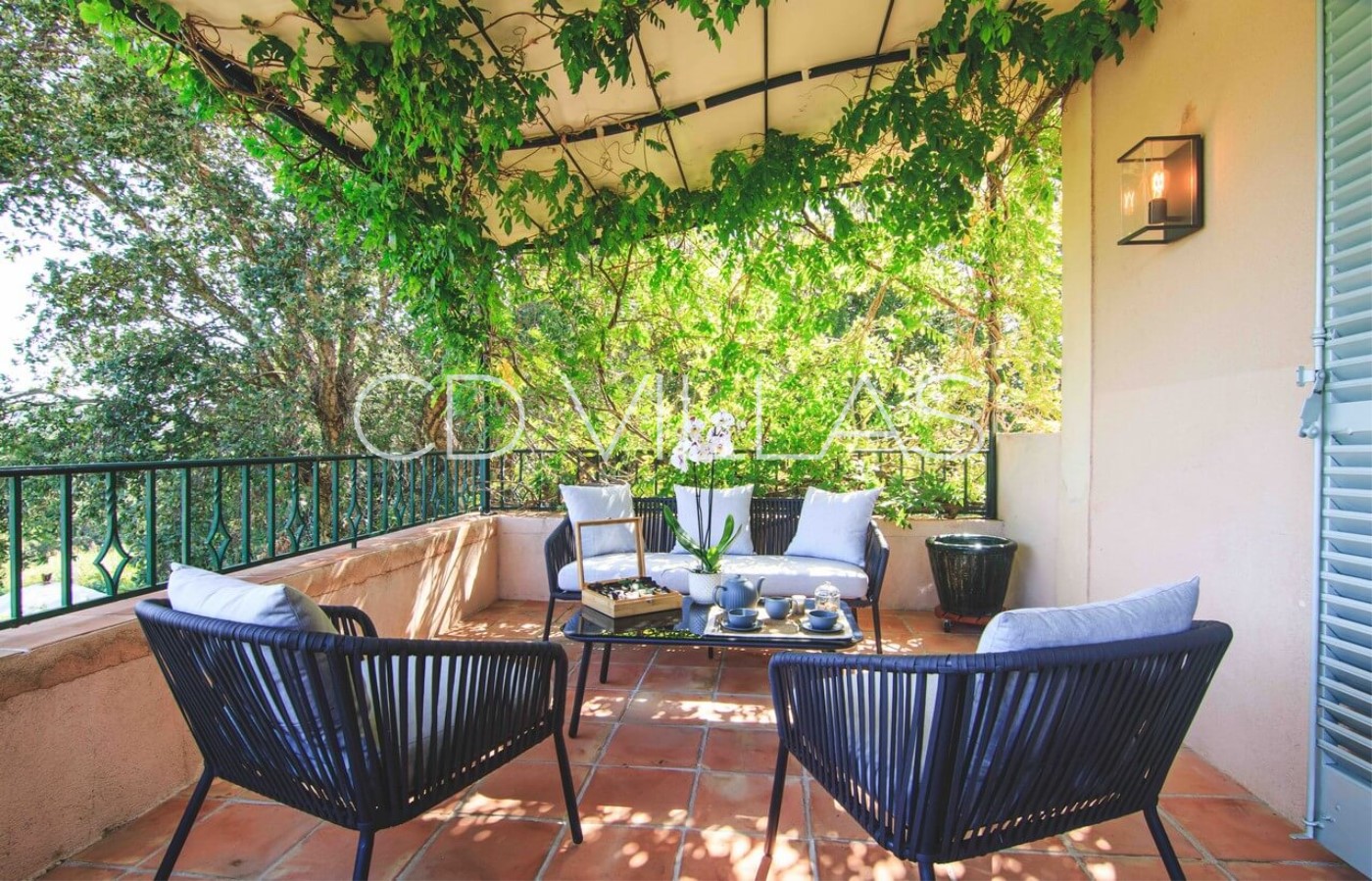 Composed of a main villa (4 ensuite bedrooms, 8 guests), a guest house consisting of two double ensuite bedrooms, and a studio featuring a double ensuite bedroom , a kitchen, and a small living area. A caretaker's house (sleeps 2 members of staff) offering over 320 m2 of living space (250 m2 reserved for VIPs) + 200 m2 of outdoor living spaces (covered terraces, pergola, ramade and balconies) on 4,800 m2 of wooded and landscaped land of Mediterranean essences overlooking the vineyards of the Belle Isnarde hill (dominant sea view of the Baie des Canoubiers and Château Borelli). Ideally located halfway between Place des Lices and Tahiti beach (5 min by car), and 200 m from Château de la Messardière Palace 5*.
