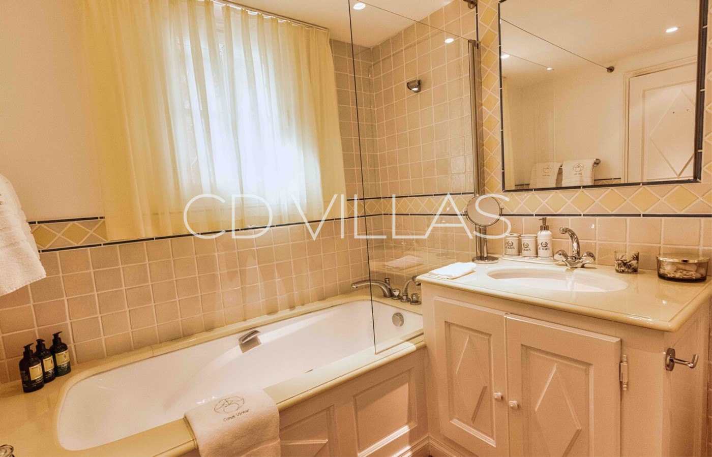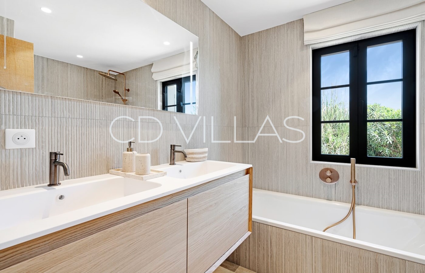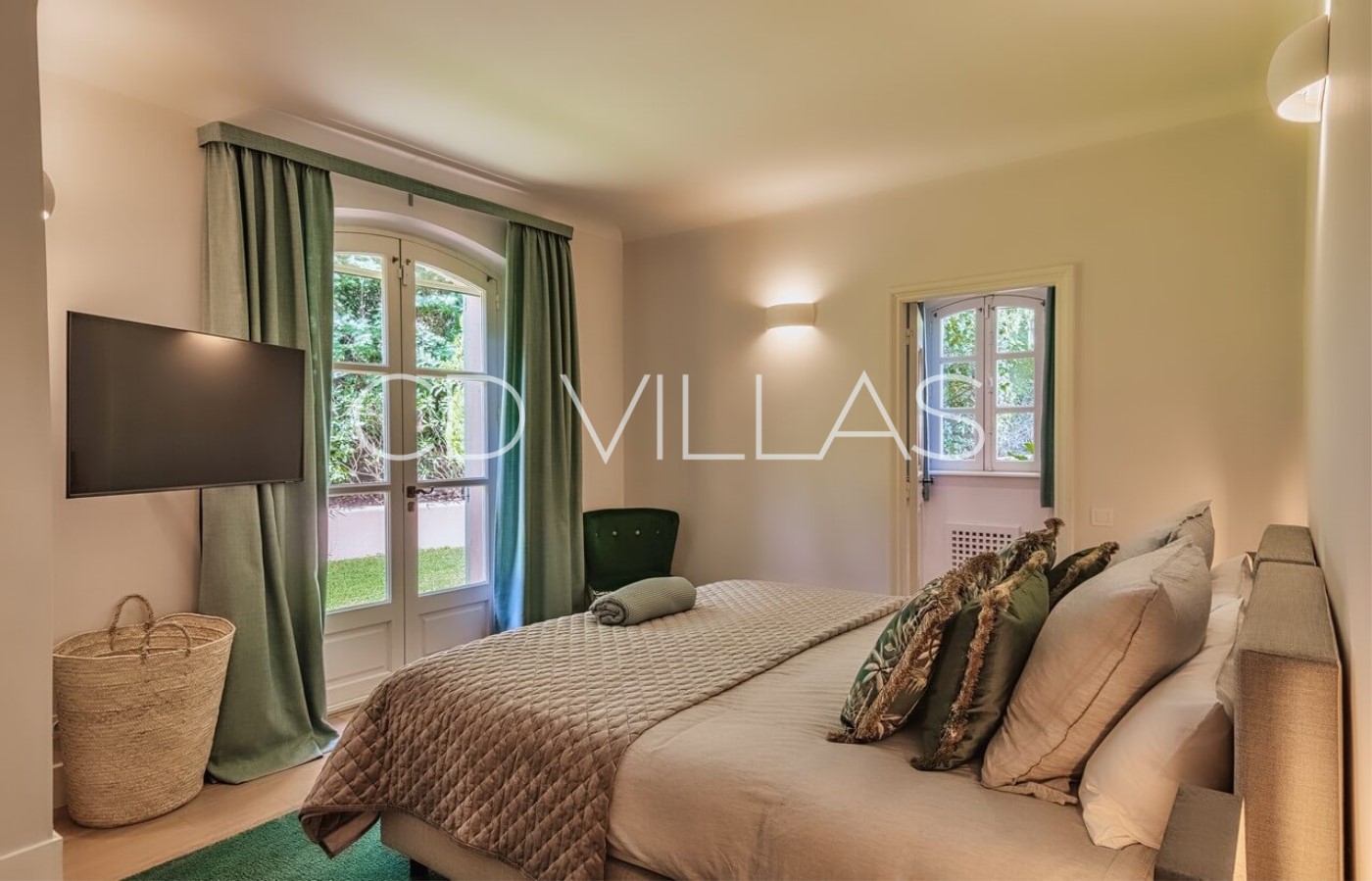 - "Gregal Room" (24 m2), pool side, Twin Bed (2 x 90cm) or Double Bed 180cm, bathroom (sink, bathtub, wc), Samsung 4K Smart TV, VOD, safe. Direct access to the garden overlooking the sea view and the bay of Canoubiers.