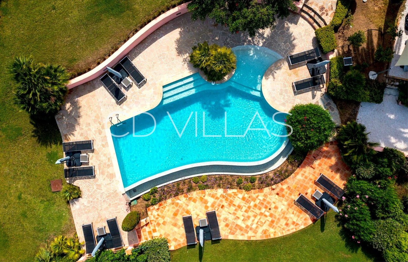 - Heated free-form swimming pool (12m x 5m), deckchairs and sun umbrellas.