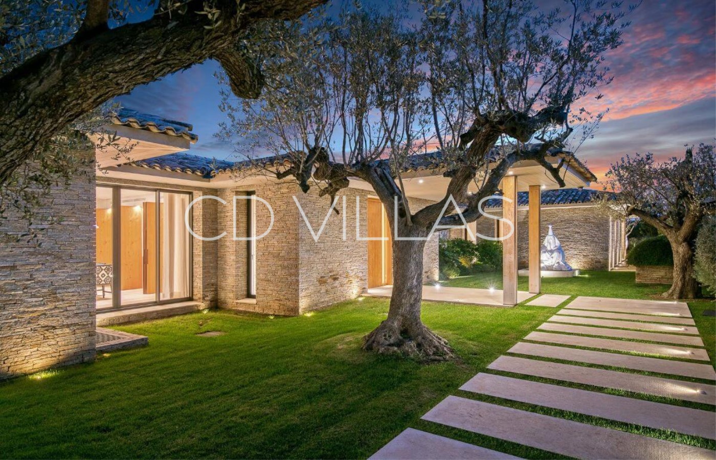 The beautiful 5000m² garden of landscaped Mediterranean trees and plants houses a superb 20 meter long infinity pool equiped with underwater speakers, heated on demand. The pool house has a full working bar with fridge and ice machine and a large lounge area to relax with a cool drink.