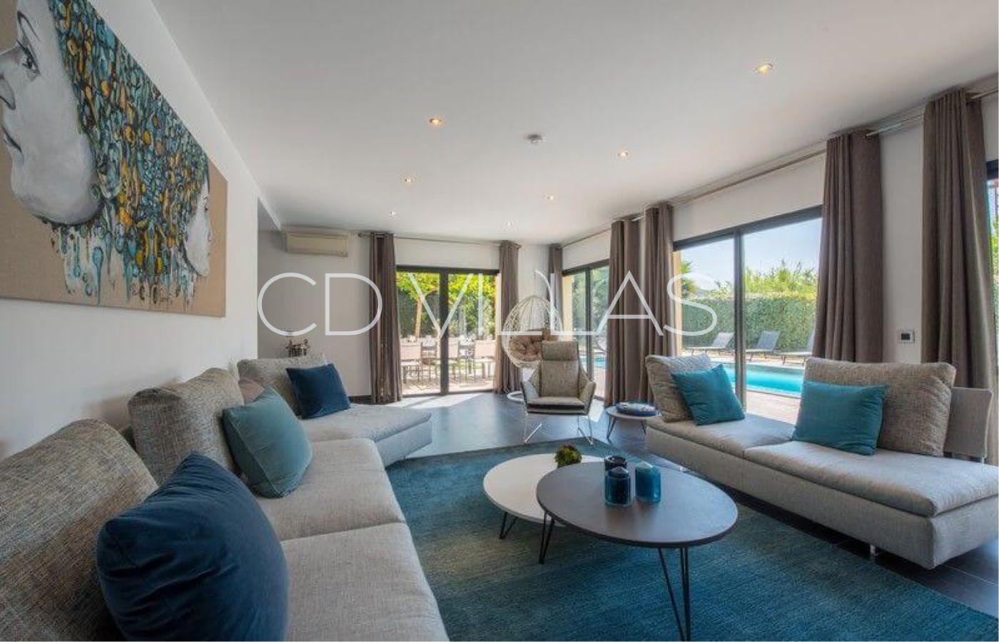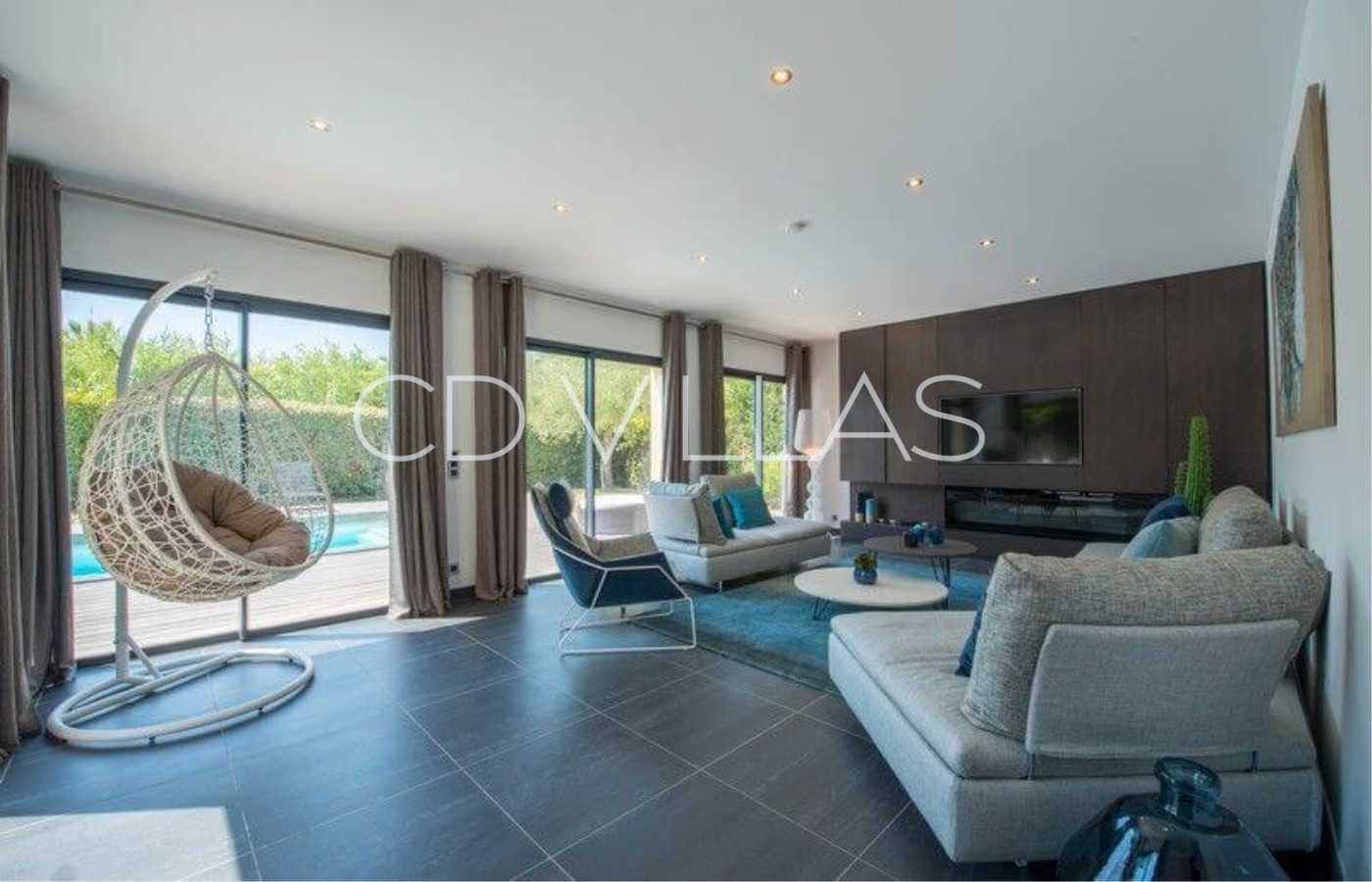 Living Room - with large sofas, smart TV with french TNT, DVD player. With direct access to the terrace and pool