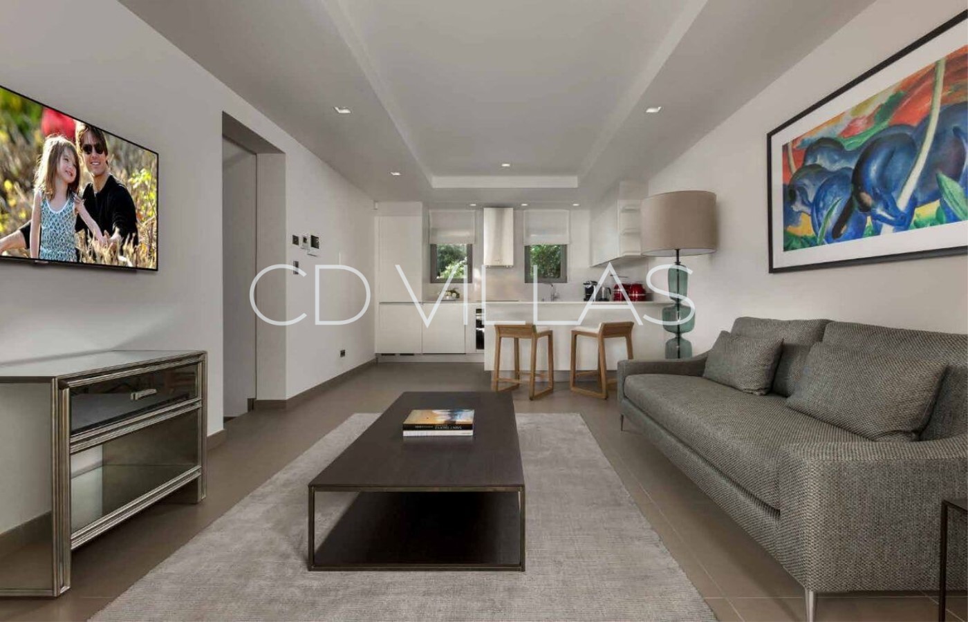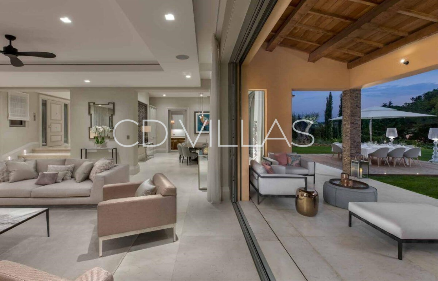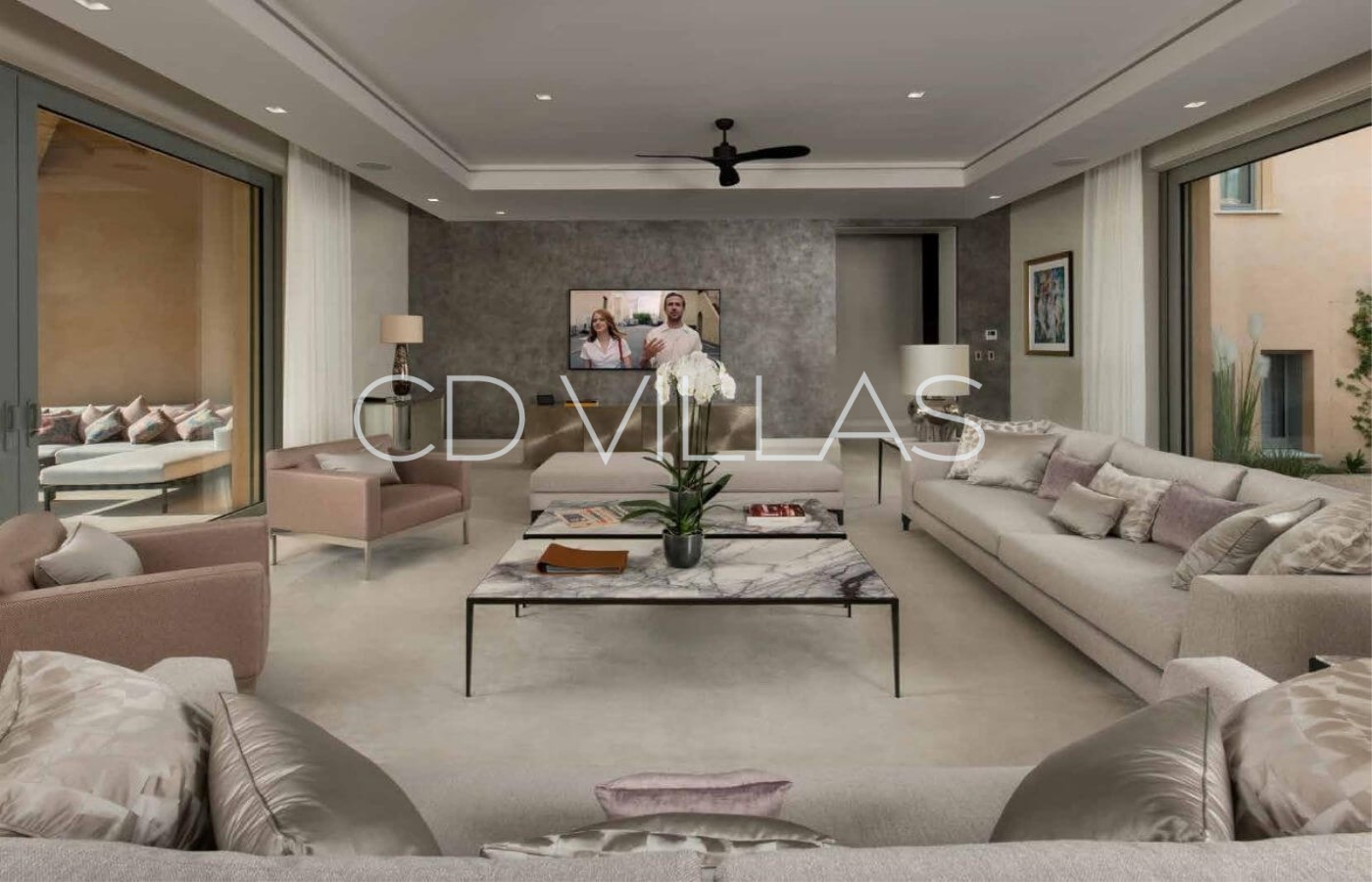 Living Room - with 2 sofas, flat screen TV, french, german, russian channels plus UK Sky TV. Opening on both sides onto summer lounges. With seaview