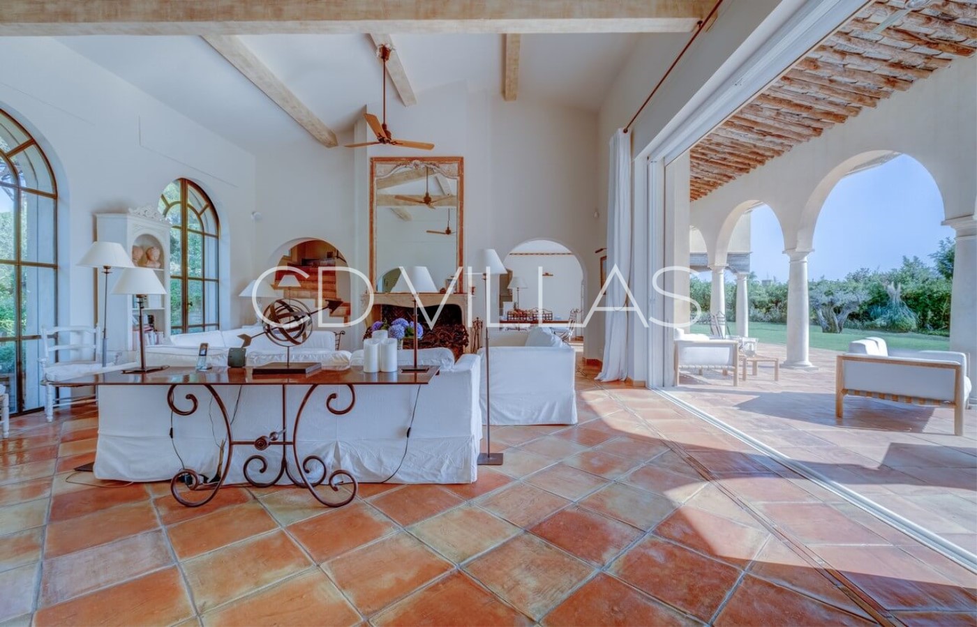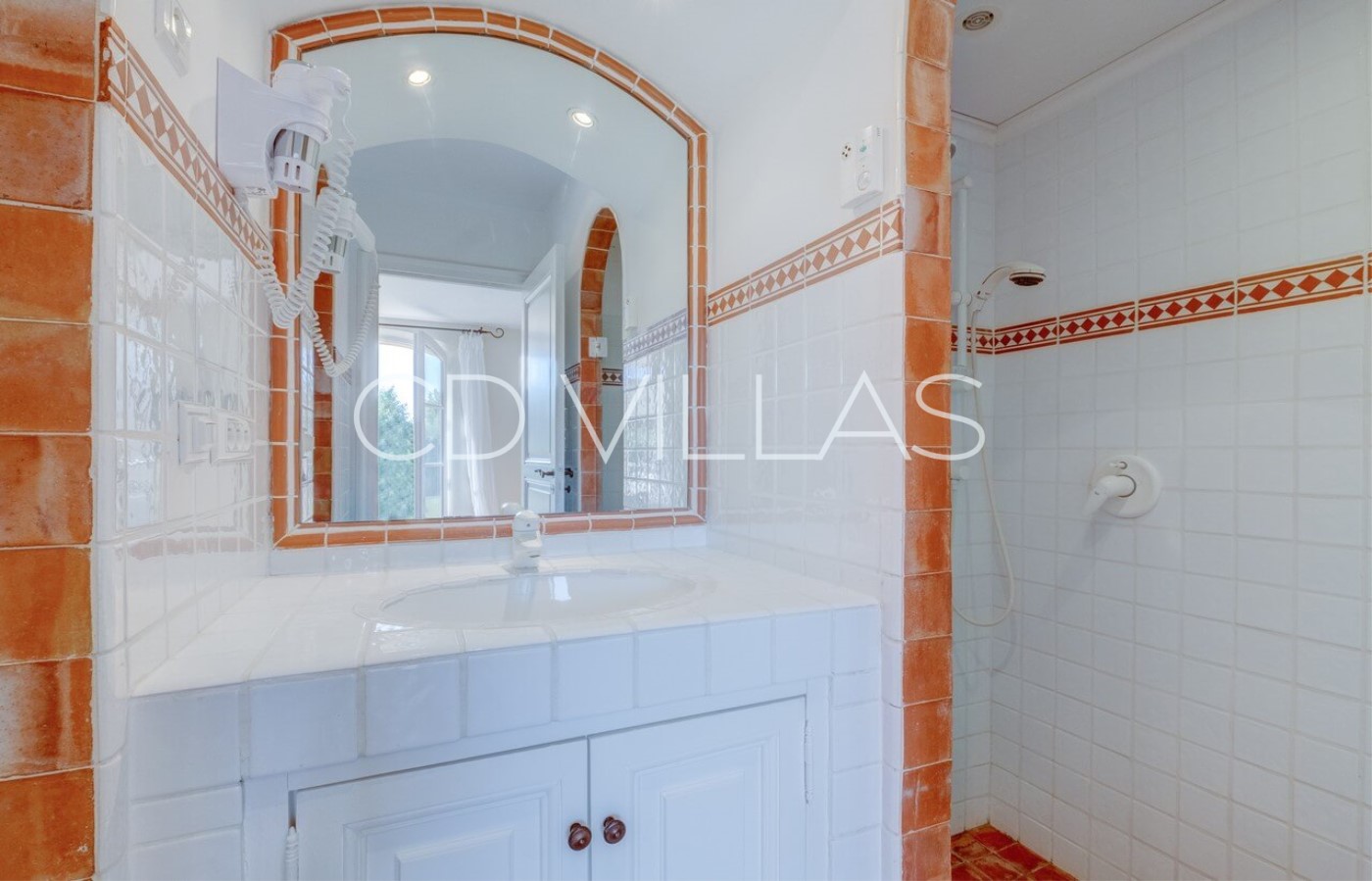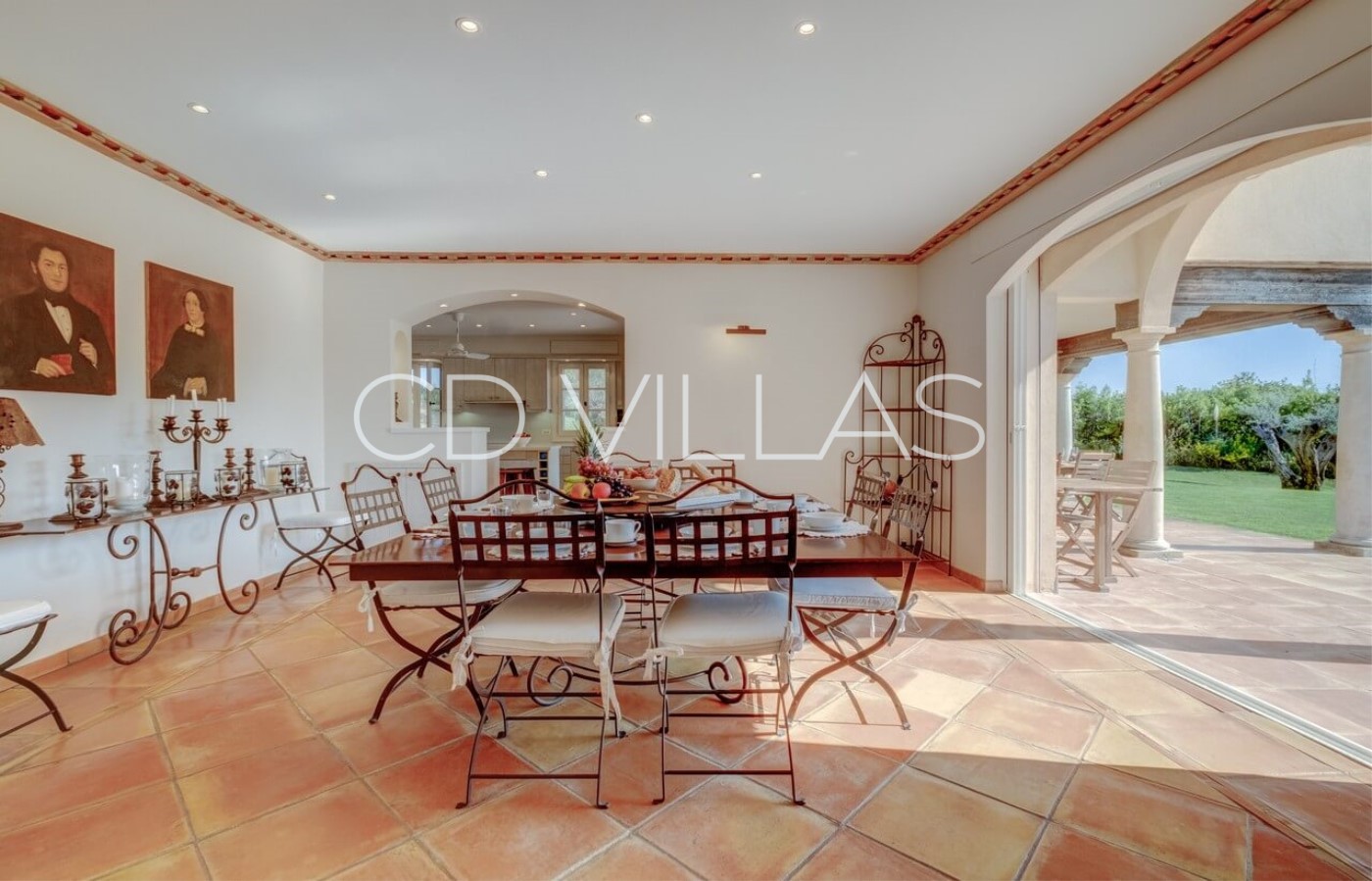 The house offers several terraces to enjoy a cup of coffee in the morning, or alfresco dining in the shade, with a traditional BBQ, a summer lounge built in the stone walls and a fountain next to it to enjoy the sound of water. The 15x6 metre swimming pool is surrounded by a sun terrace with lounge chairs and sits in the middle of the large lawn garden with grand palm trees around it.
