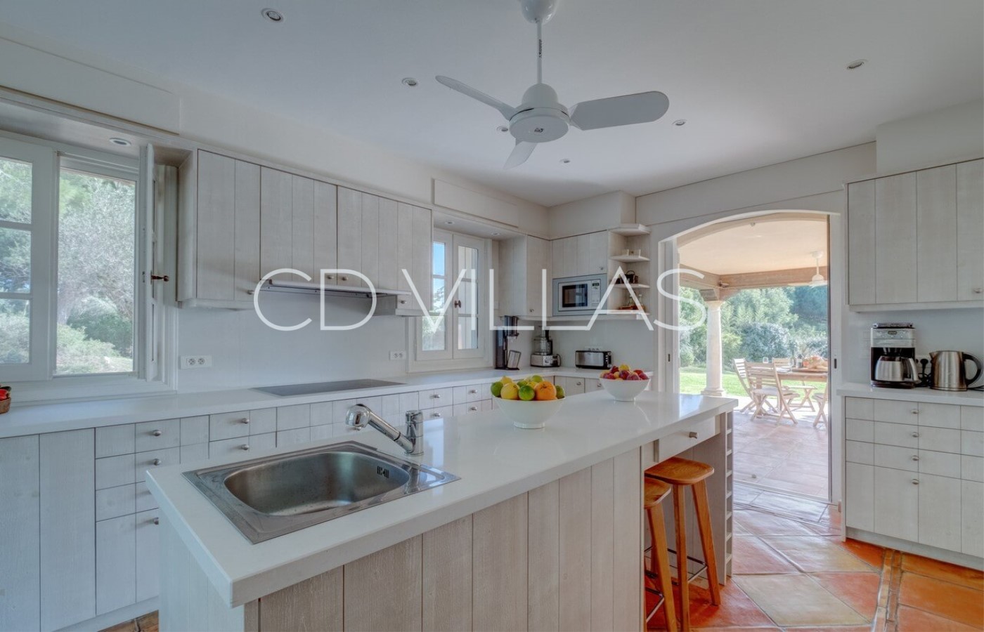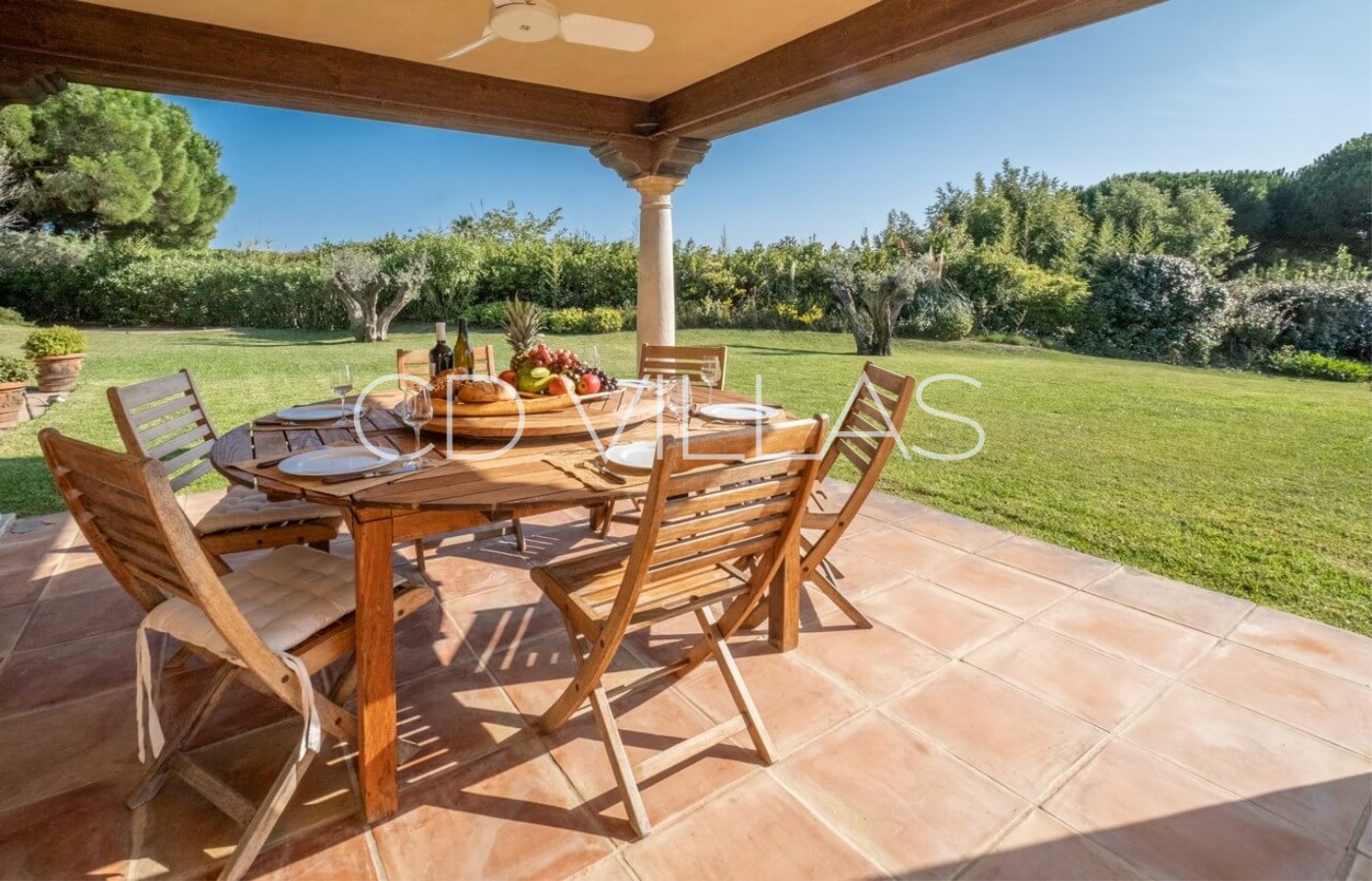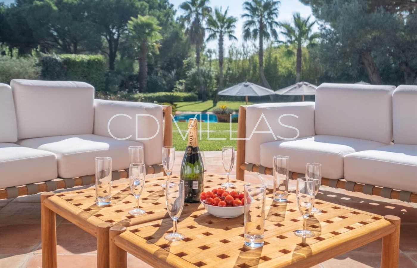 The house offers several terraces to enjoy a cup of coffee in the morning, or alfresco dining in the shade, with a traditional BBQ, a summer lounge built in the stone walls and a fountain next to it to enjoy the sound of water. The 15x6 metre swimming pool is surrounded by a sun terrace with lounge chairs and sits in the middle of the large lawn garden with grand palm trees around it.
