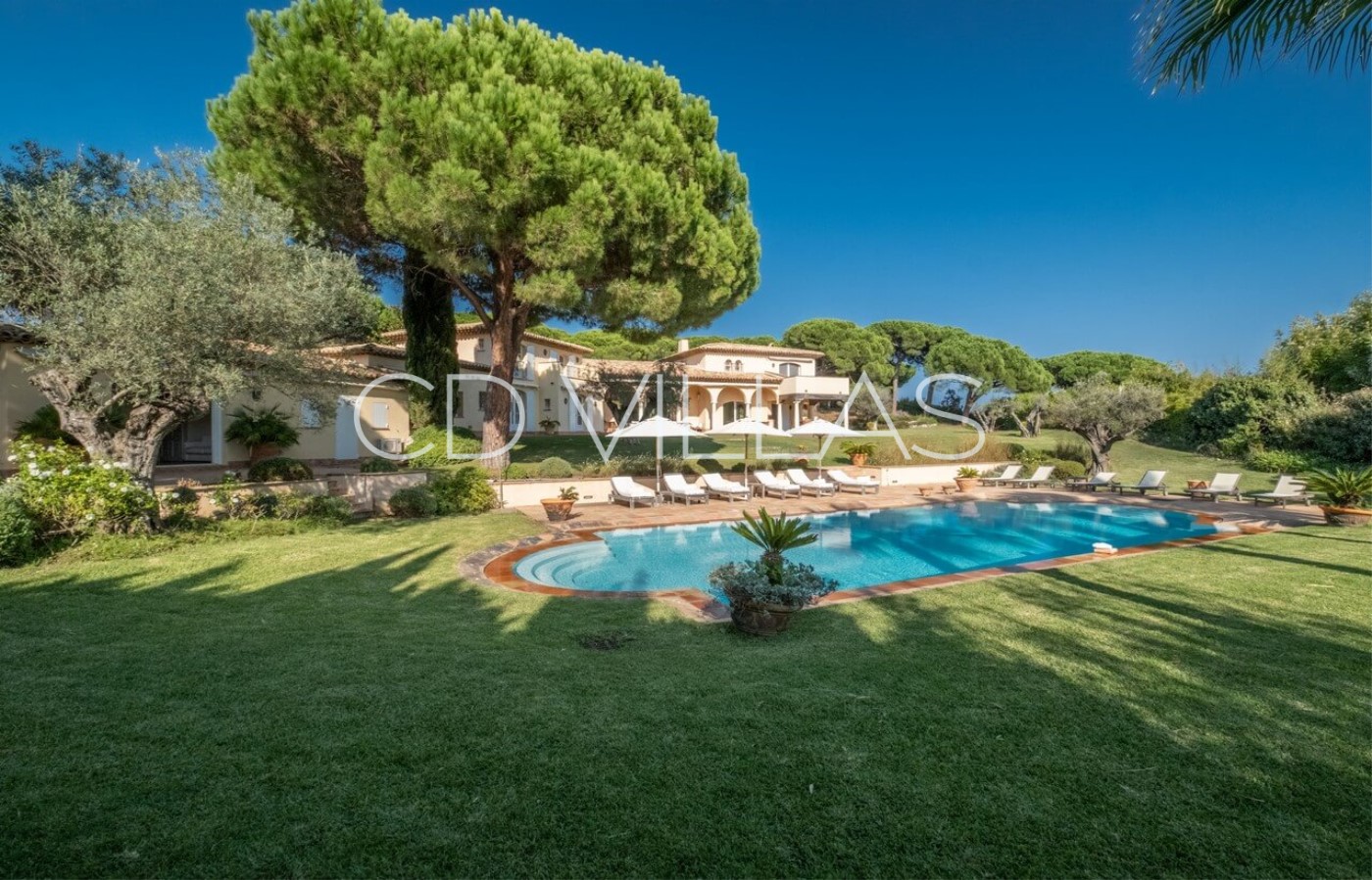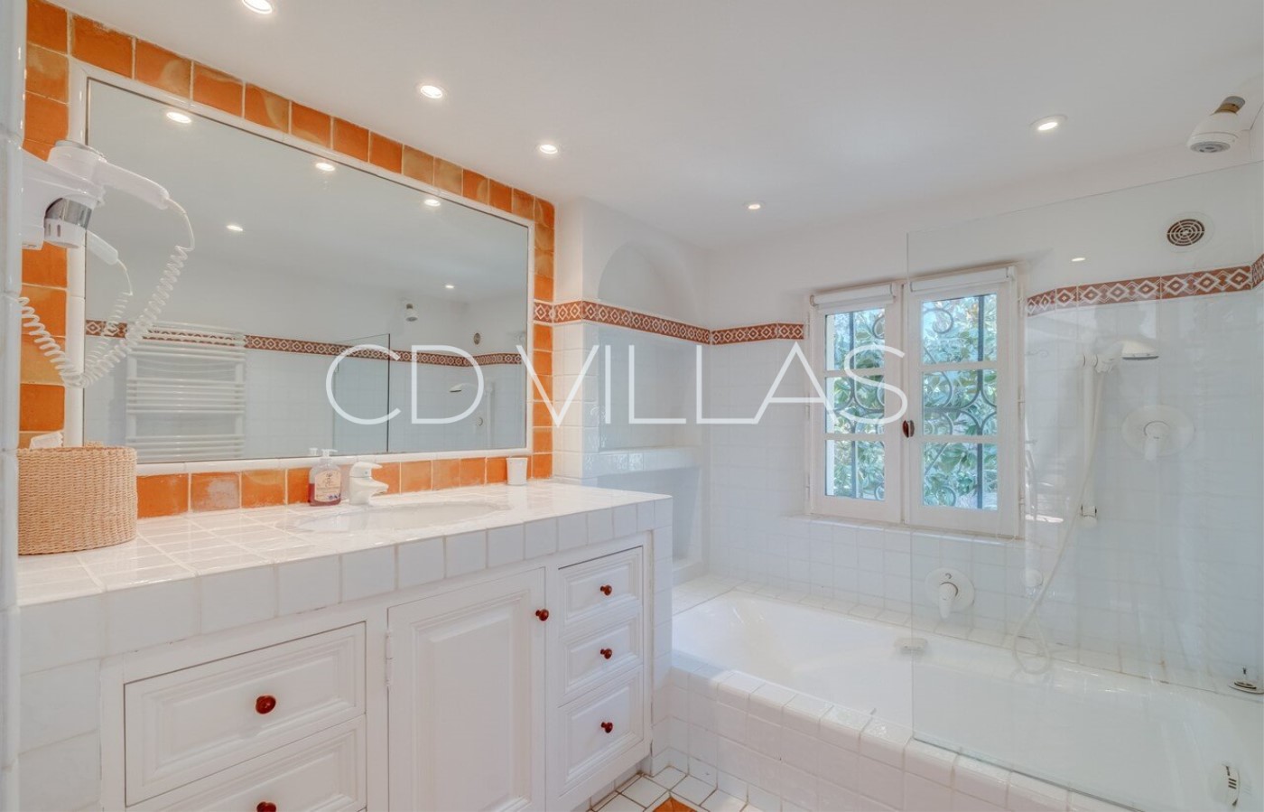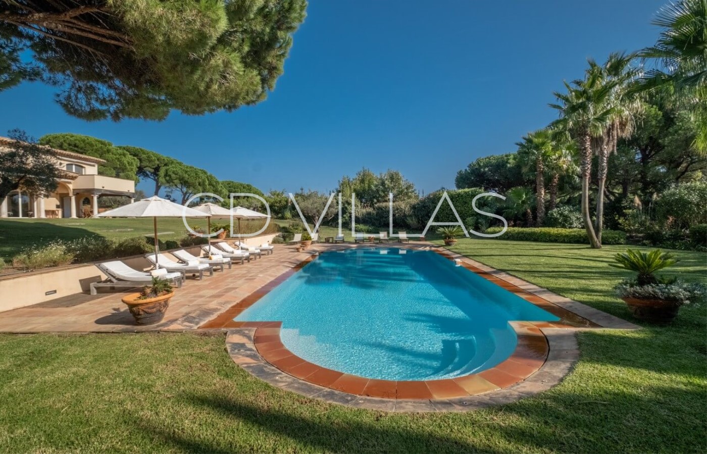 Villa Embellie is ideally located in the heart of the Domaine des Parcs and offers a luxuriant 5900m² garden, with several water features, fountains, landscaped with native Mediterranean plants: a citrus garden, large olive trees, and towering palm trees surrounded by traditional Provencal dry-stone walls.