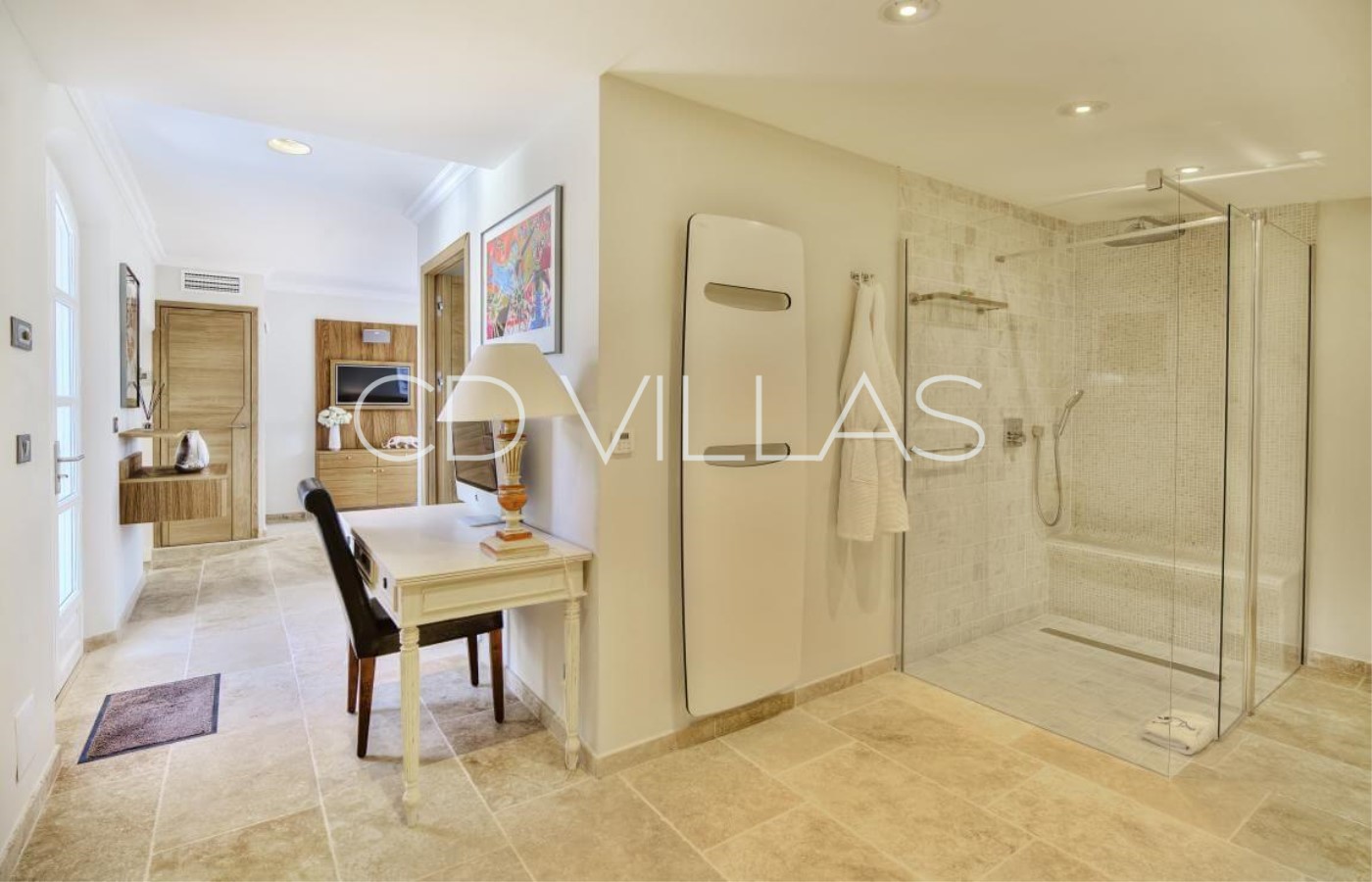 Step outside into beautiful mature gardens, including with cork oaks, arbutus, backgrounds pines and the traditional Provencal Cypress trees. The infinity pool is 15 x 5 m, heated and has a lovely natural stone terrace. The pool house is equipped with a summer kitchen and there is an outdoor jacuzzi, and a gym.