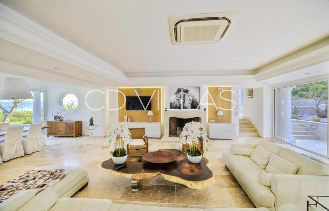 Living Room - Very large living room with several sofas, terraces on both sides, flat screen TV, fireplace, seaview and air conditioning