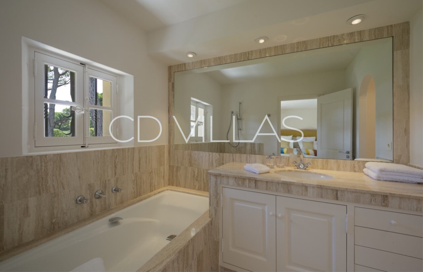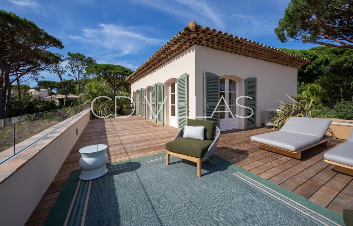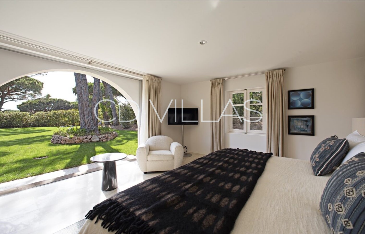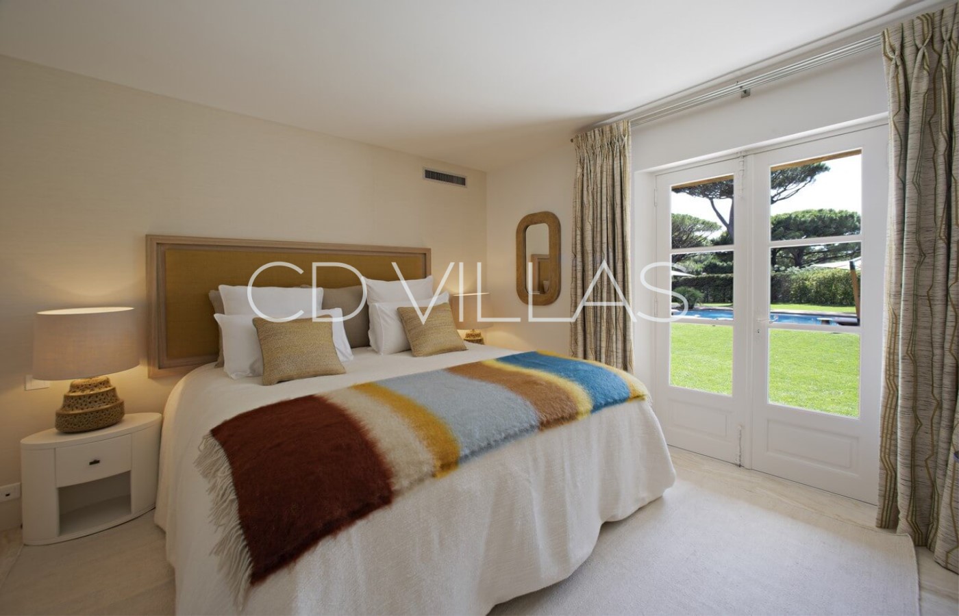 A magnificent building with many indoor and outdoor living spaces (patios, private terraces, covered terraces, sunbathing, Pool House, teak beach). A Mediterranean landscaped park overlooked by majestic umbrella pines houses a swimming pool with Hollywood dimensions. The villa is located in the most exclusive private domain in Saint Tropez, Domaine des Parcs and offers a haven of peace for holidays with family or friends.