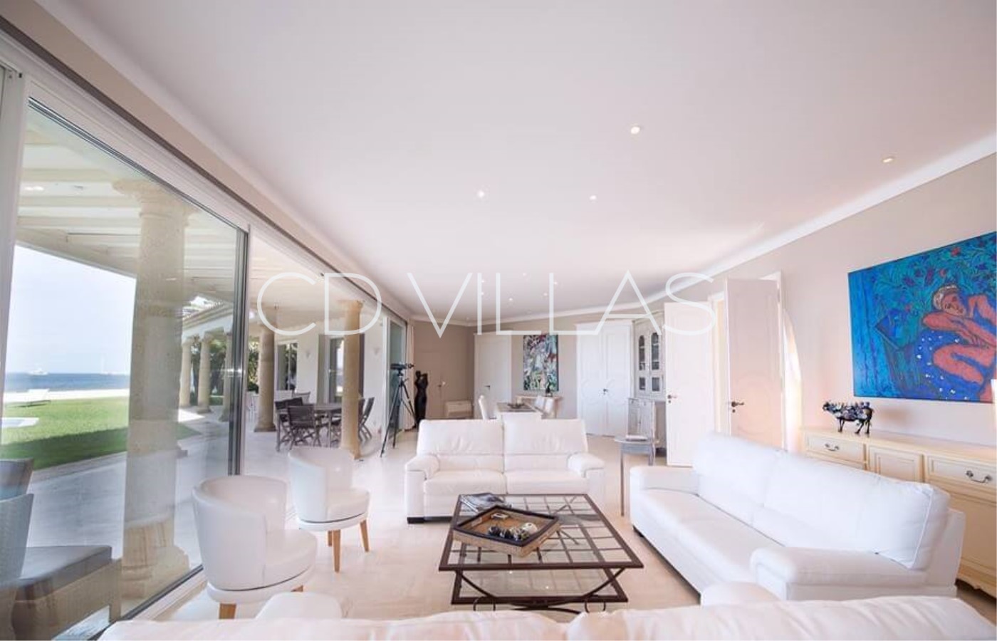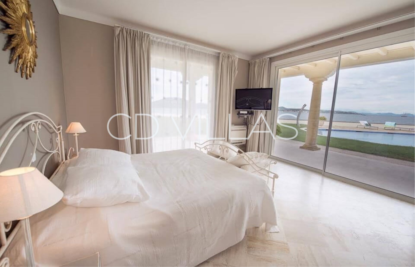 the swimming pool and large windows with sea views. They have