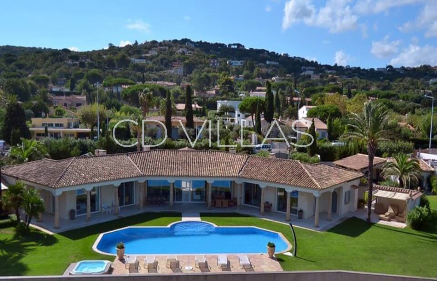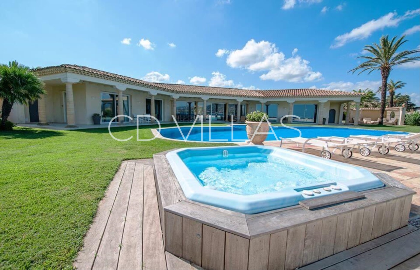 The large swimming pool and jacuzzi have a bird's eye view of the