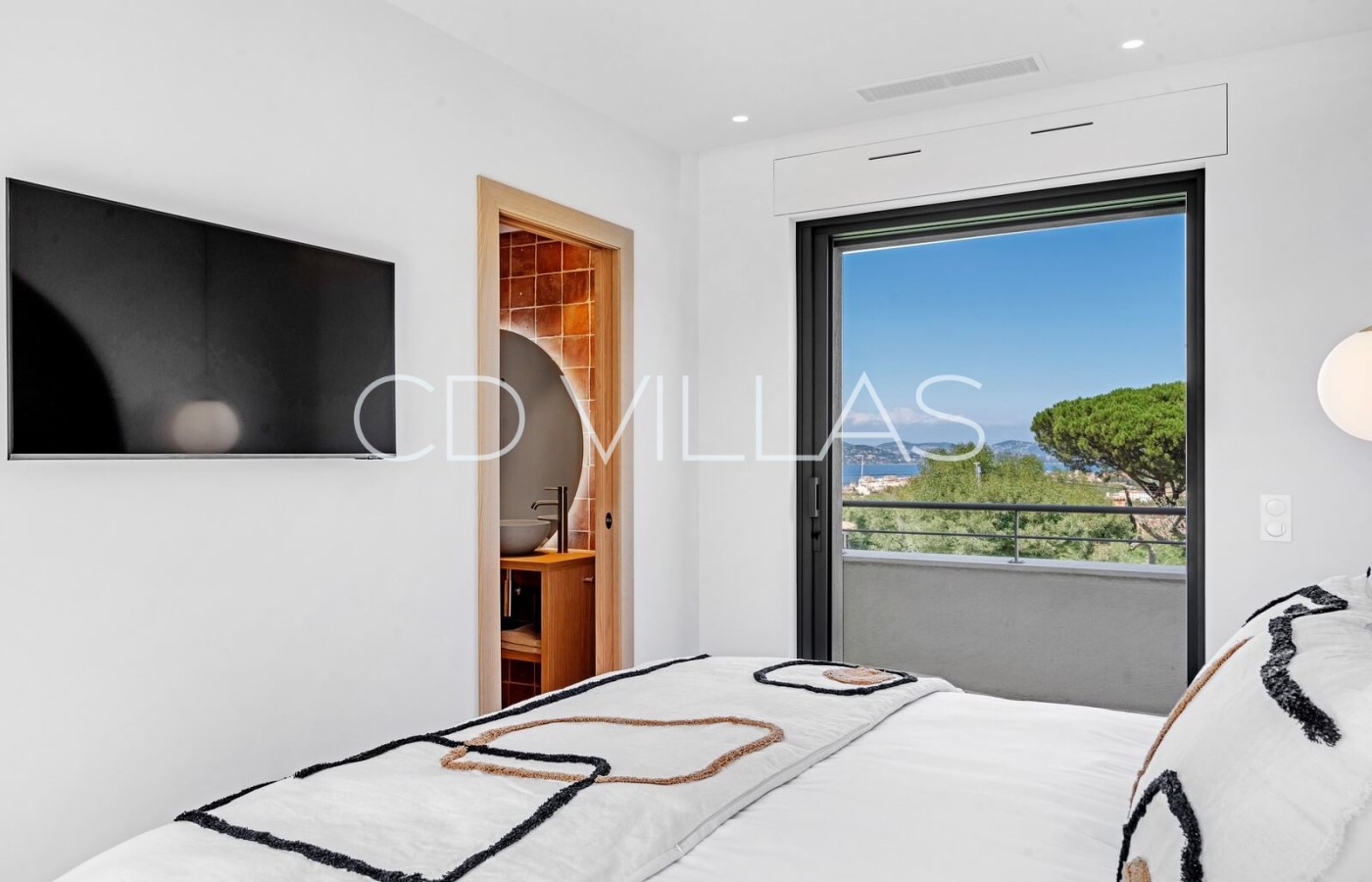 Bedroom 2 - Master Bedroom with a large double bed, with ensuite bathroom (bathtub, shower), private terrace and sea view.