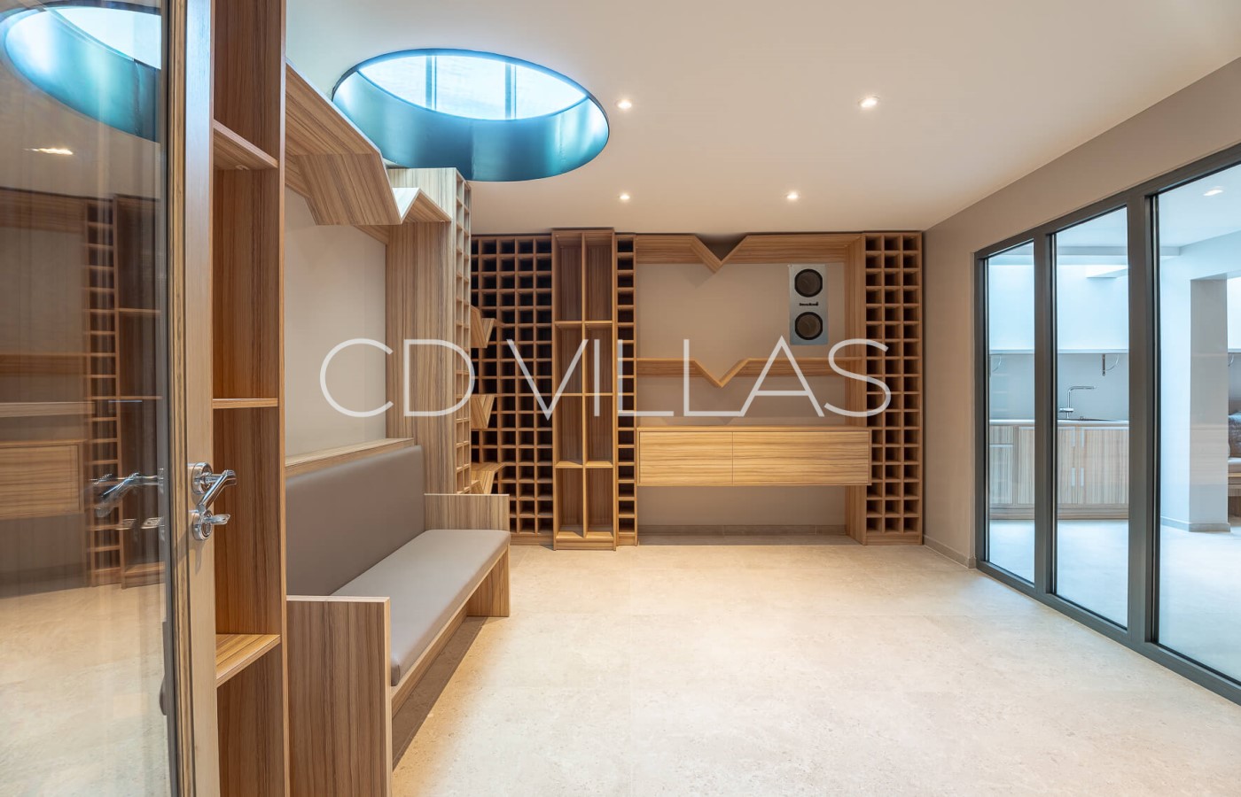 The villa is equipped with Sauna and Hammam on the lower level, large wine fridge and exercise space.