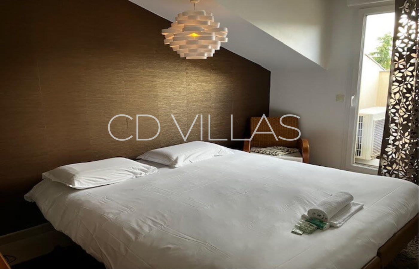 Situated in a modern building in the centre of Cannes, this large bright duplex apartment of 75m², is composed of 2 large double bed bedrooms, 2 shower rooms, guest WC, fully equiped kitchen, dining room, lounge and further benefits from a large terrace with panoramic city and sea views.