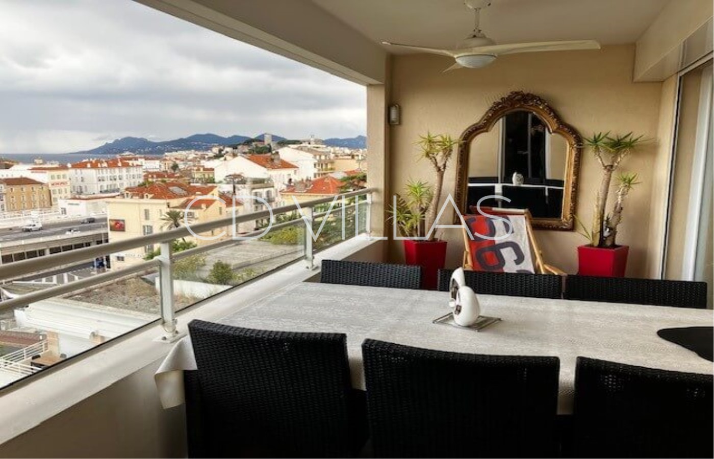 Large bright and spacious apartment in the heart of Cannes, benefiting from large terrace with panoramic city and sea views.
