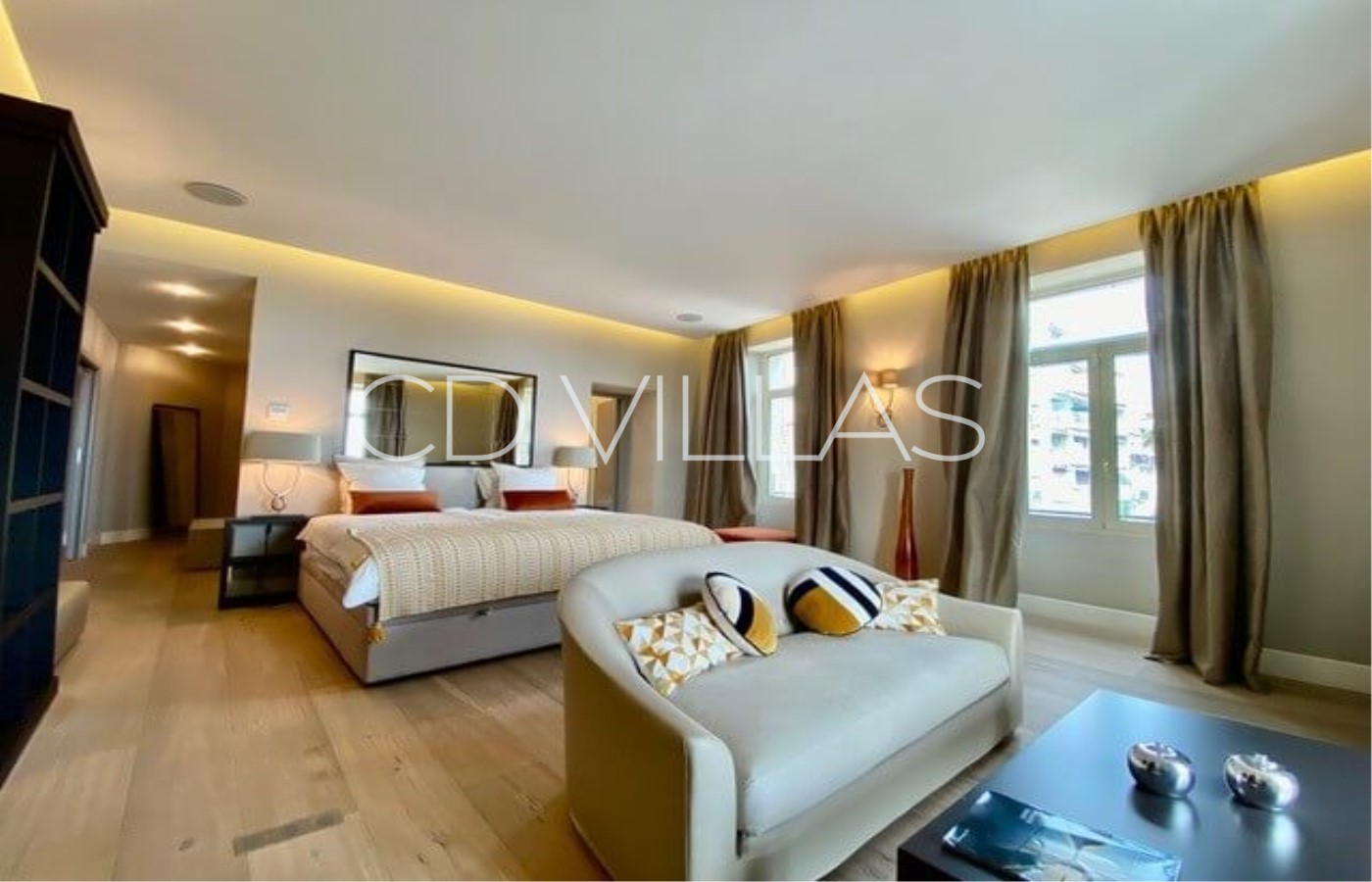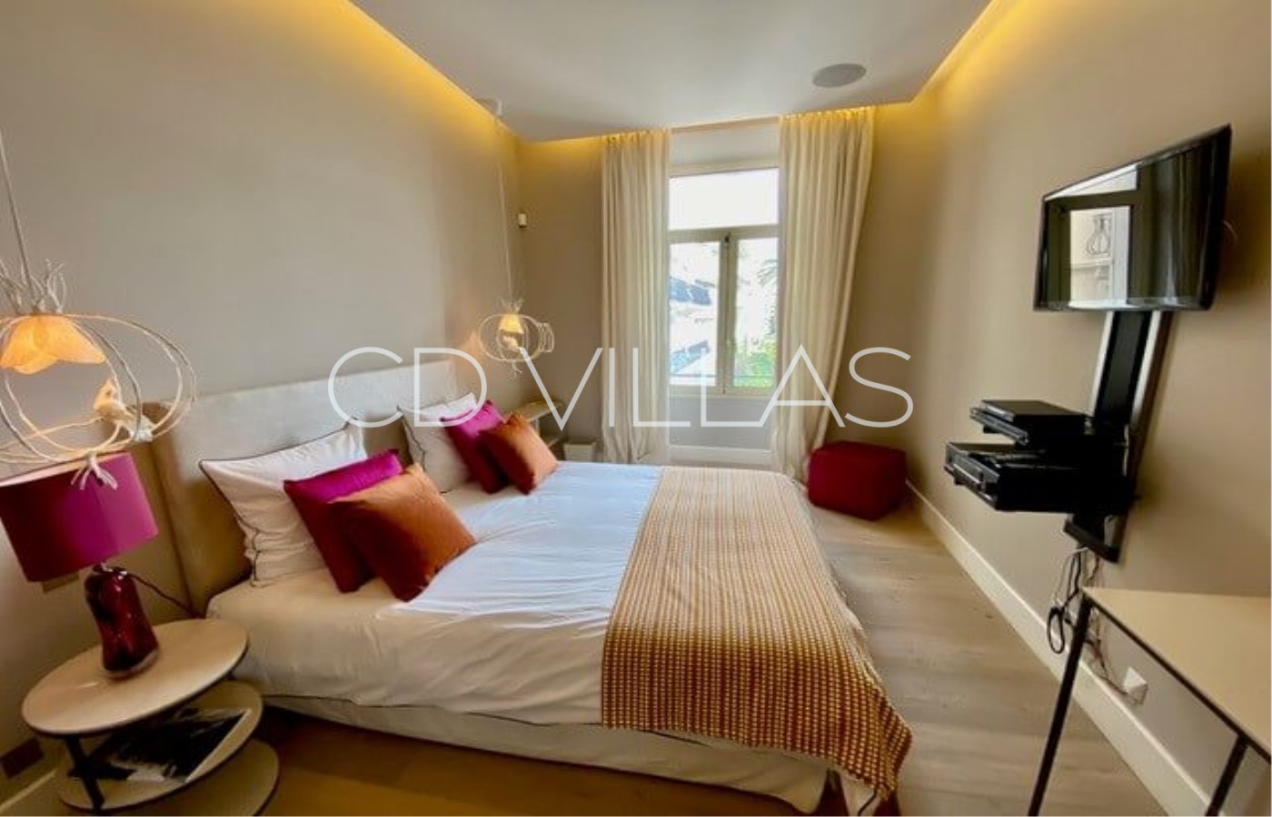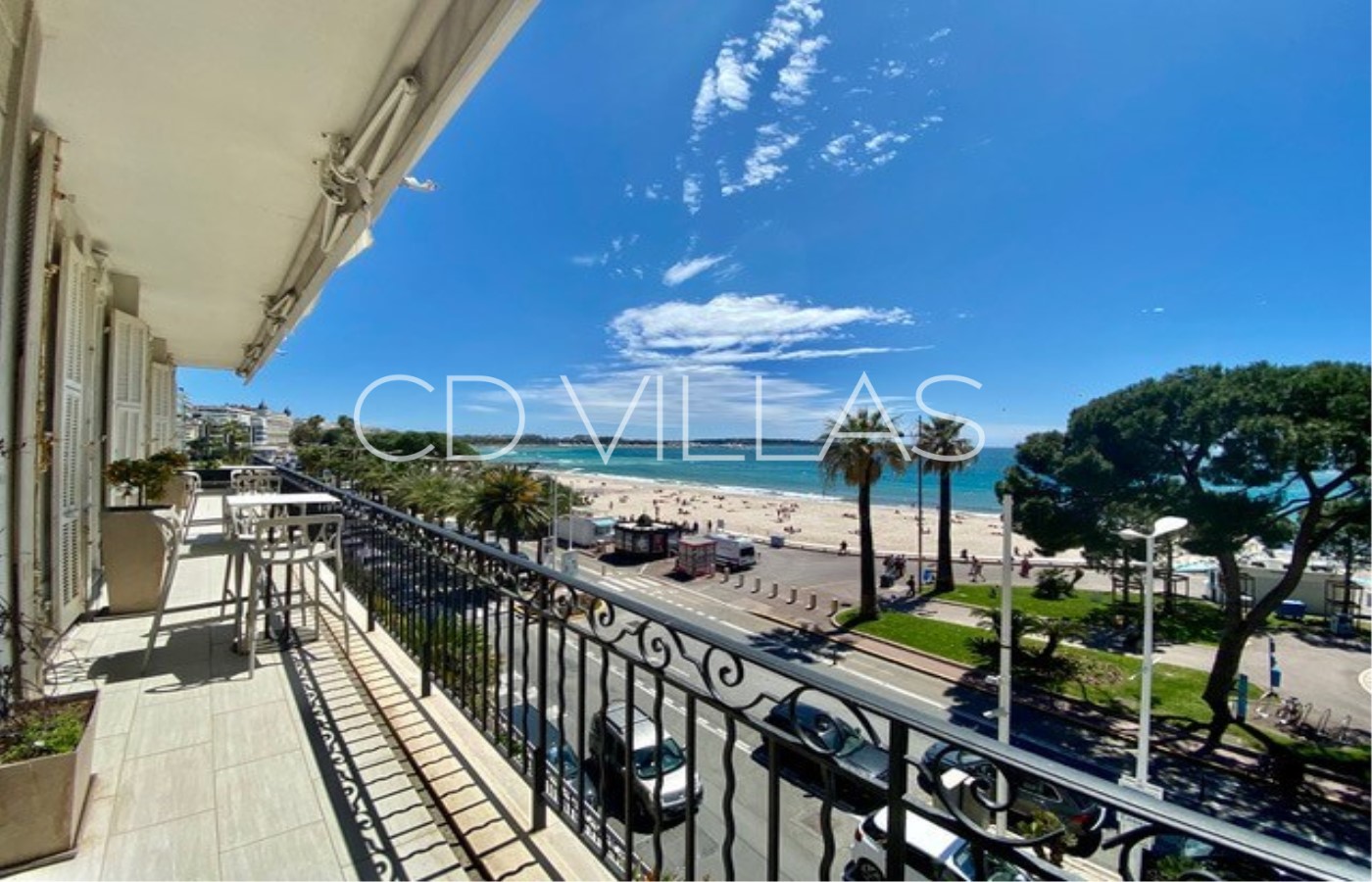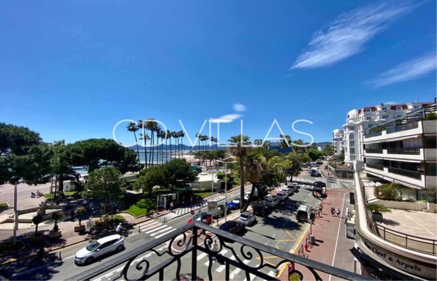 This luxury apartment is located on the 2nd floor of a prestious building on the Croisette and offers magnificent sea views over the Bay of Cannes, just a few minutes walk to the Palais des Festivals.