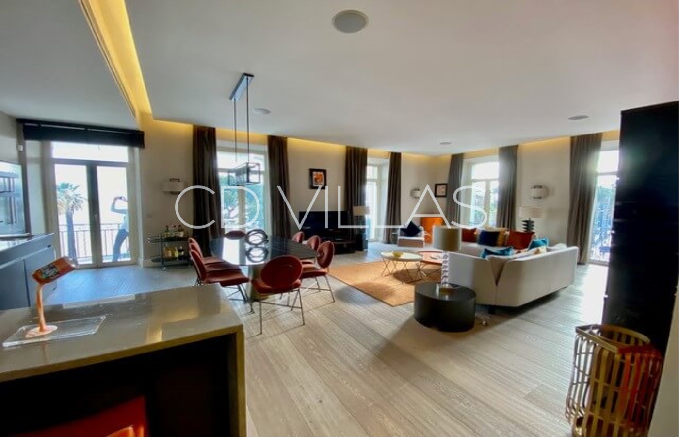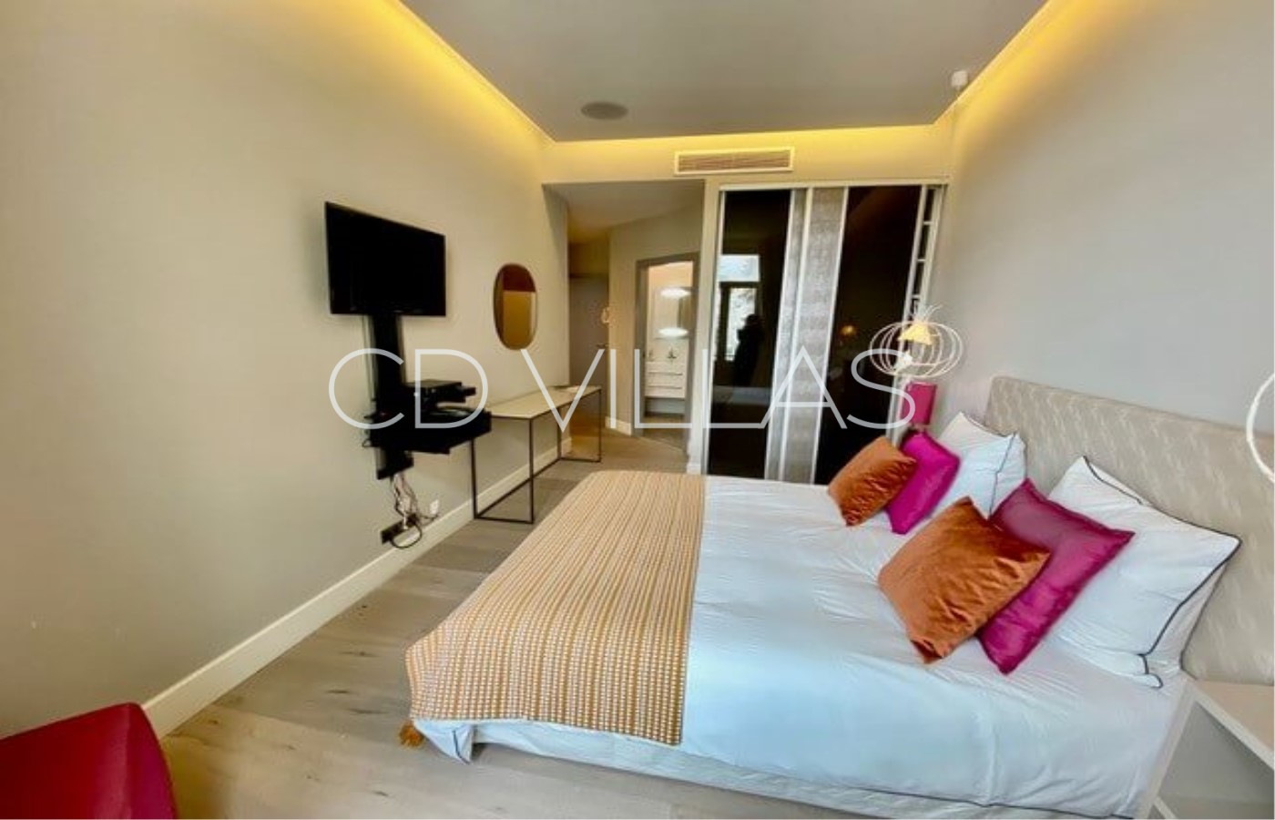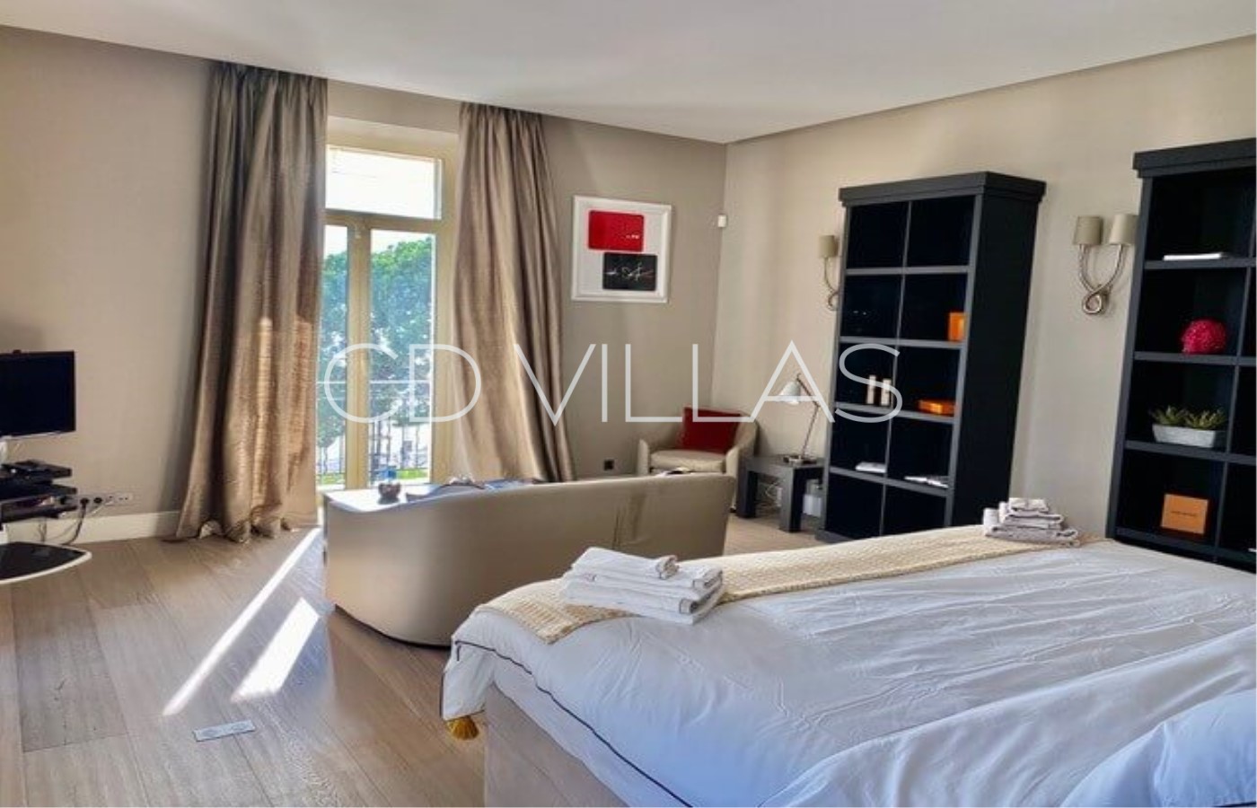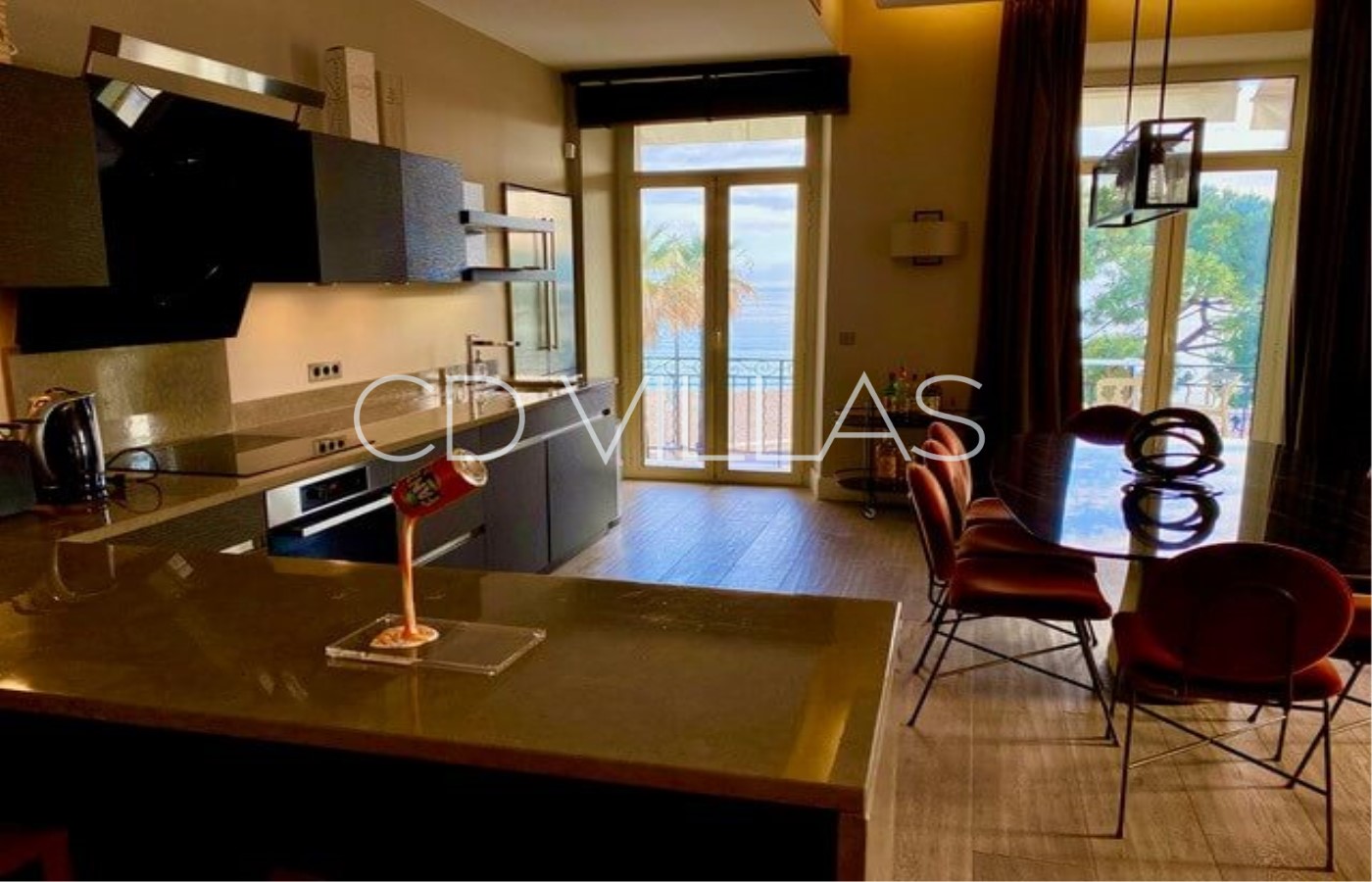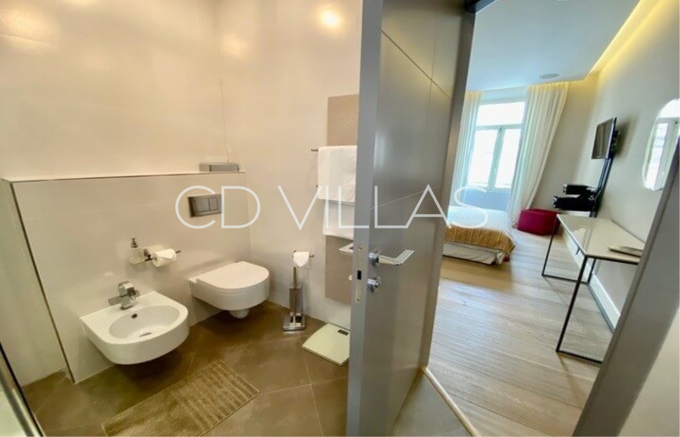 This luxury apartment is located on the 2nd floor of a prestious building on the Croisette and offers magnificent sea views over the Bay of Cannes, just a few minutes walk to the Palais des Festivals.