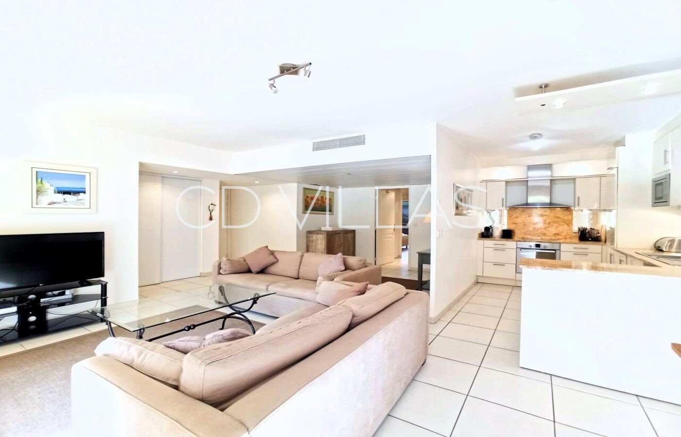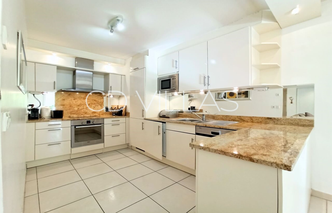 The bright and spacious 2 bedroom apartment with shared bathroom, is compsed of a large living area, open kitchen onto dinning room. Further benefits from large terraces overlooking the residential grounds and shared pool.